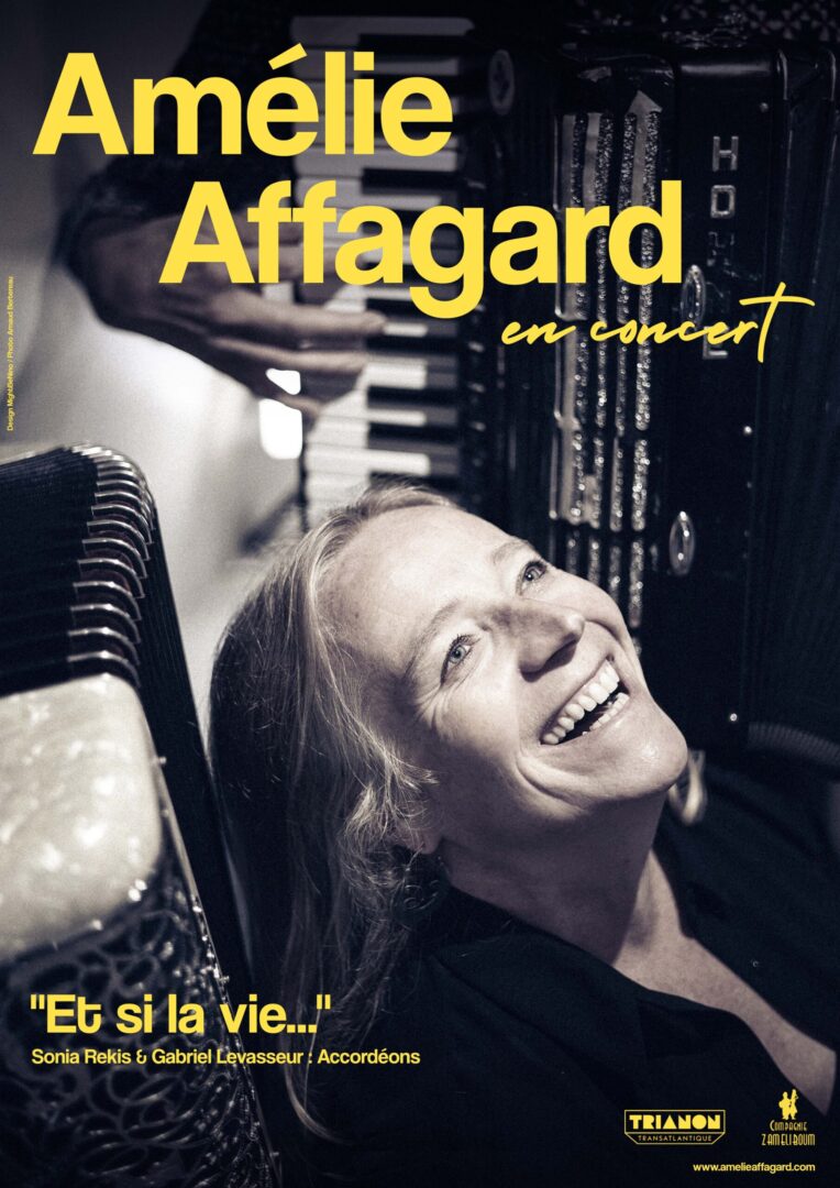 Pour cette nouvelle création, Amélie Affagard se lance dans un projet des plus captivants. Passionnée de chanson française et de musiques du monde, elle a décidé de créer une fusion envoûtante en collaborant avec deux accordéonistes aux univers distincts et complémentaires. Avec d’un côté, une virtuose qui chatouille les frontières du classique, de l’autre, un maestro qui fusionne l’accordéon avec des sonorités inattendues ; tous deux faisant vibrer les cordes sensibles de l’audace, sur lesquelles Amélie vient donner un nouveau souffle à chaque mot et chaque note, comme une bouffée d’air frais qui viendrait chavirer l’âme ! Elle nous rappelle que le bonheur réside souvent dans les détails, dans les petits moments qui donnent un sens à notre existence. À travers sa musique, elle nous invite à embrasser la vie dans toute sa splendeur, à savourer chaque instant, qu’il soit doux ou tumultueux.