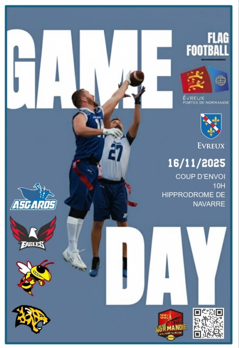 Pour la 3ème journée du championnat mixte de Flag, les Asgards reçoivent à l'hippodrome : les Crazy Bees de Barentin, les Eagles de l'Aigle et les Léopards de Rouen