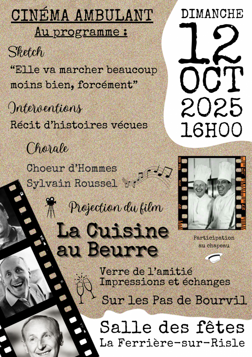 L'association Sur les pas de Bourvil vous propose de passer un agréable moment dimanche 12 octobre 2025 à partir de 16.