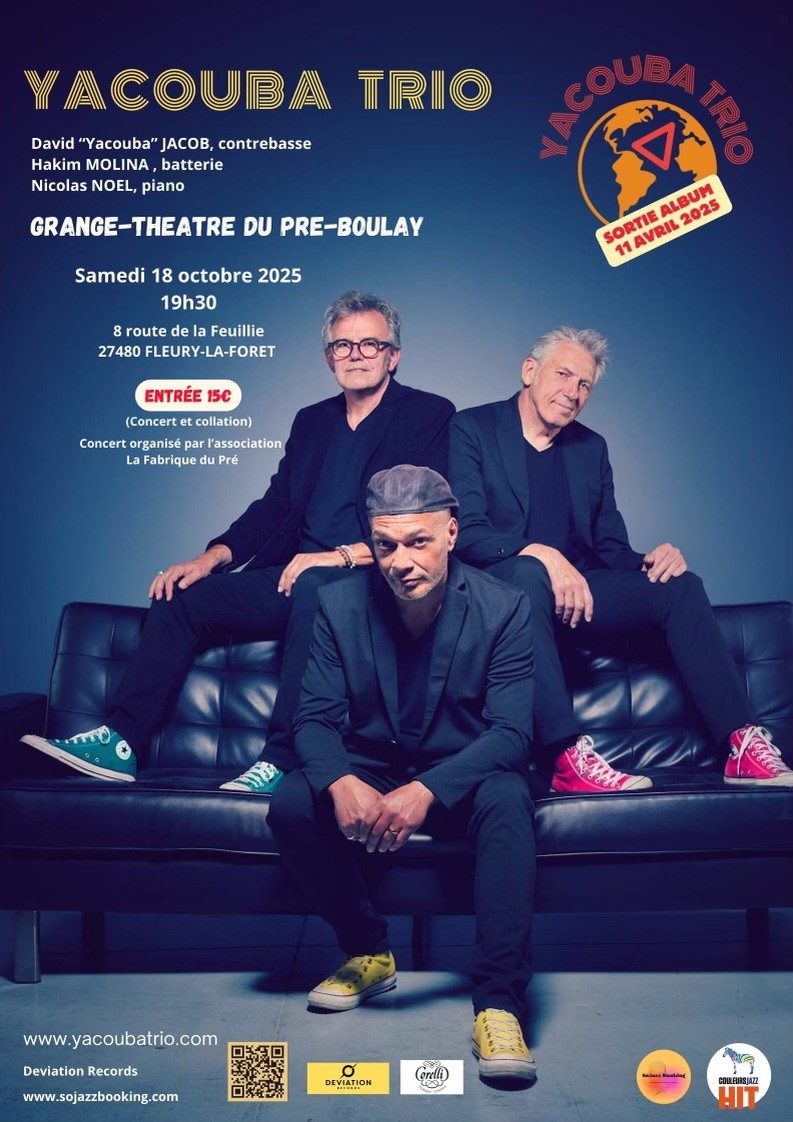 La Fabrique du Pré organise un concert du groupe "Yacouba Trio" ce samedi 18 octobre 2025 à 19h30 dans la grange-théatre du Pré-Boulay.