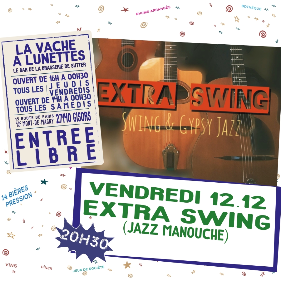 Extra Swing est un duo de guitares qui explorent le répertoire de Django Reinhardt et de ses héritiers. Des valses, des boléros, des morceaux swings, c'est le répertoire jazz manouche des années 30 à aujourd'hui. Antoine Santamaria et Johann Boissière nous invitent au voyage dans cette musique tendre, fougueuse, nostalgique et joyeuse à la fois. Django a montré un chemin et ces guitaristes l'empruntent avec bonheur.