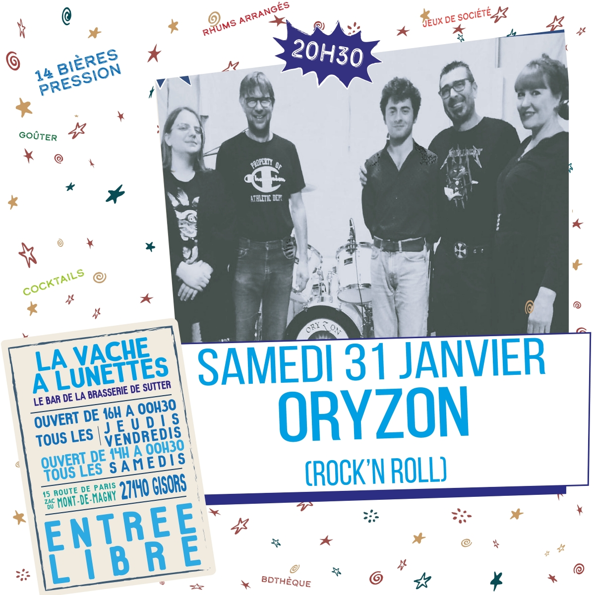 Oryzon est un groupe local de Gisors qui distille un rock puissant. Son répertoire : des morceaux de AC/DC, Slash, Scorpions, Lenny Kravitz, The Cranberries, Foo Fighters… De bons souvenirs pour beaucoup et une invitation pour chanter les refrains à tue-tête.