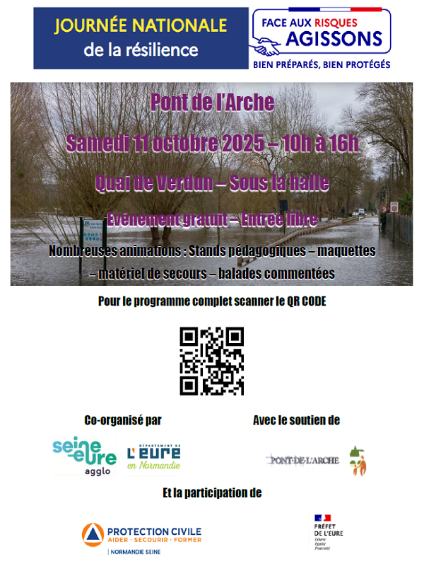 3 balades présentant les crues historiques du secteur, sont organisées. Au cours de celle-ci, un quizz est proposé pour comprendre le fonctionnement des crues. Il abordera de manière ludique : les crues historiques sur le secteur de Pont-de-l’Arche, l’évolution de la rivière Eure dans le temps, la mémoire des crues, le fonctionnement hydraulique d’un cours d’eau, l’entretien et l’anthropisation des cours d’eau, les conséquences des crues et la biologie des milieux. Départs à 10h30, 11h30 et 14h30 pour une durée de 30 minutes environ. A 12h15 aura lieu la remise des prix du concours photo « Qu’il est beau mon cours d’eau » organisé par le Département de l’Eure du 1er juillet au 22 septembre dernier. L’objectif ? Photographier les plus beaux paysages aux abords de la Seine et de l’Eure et découvrir les repères de crues du département.