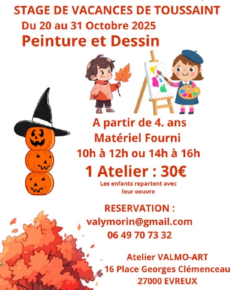 L'atelier Valmo-art organise pour les enfants à partir de 4 ans des stages de pour leur apprendre la peinture et le dessin. 2 créneaux proposés le matin de 10 à 12h ou l'après-midi de 14 à 16h. Plus d'info au 06 49 70 73 32.