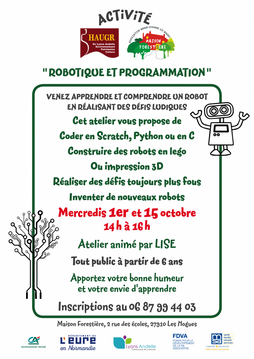 Dans le cadre des activités de l'association HAUGR à la Maison Forestière des Hogues, Lise vous propose de découvrir ou parfaire vos connaissances dans le domaine de la robotique et la programmation nécessaire pour faire fonctionner un robot.