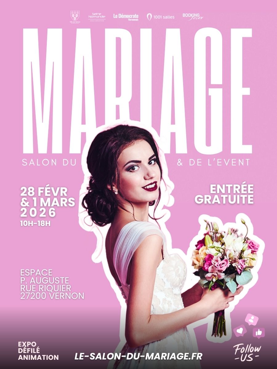 Chers futurs mariés et créateurs de rêves, Le Salon du Mariage & de l’Événementiel de Vernon vous attend pour une expérience unique !