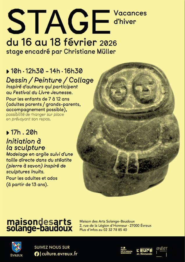 La Maison des Arts Solange-Baudoux, vous propose un stage artistique pendant les vacances d'hiver, du 16 au 18 février 2026, encadré par Christiane Müller.