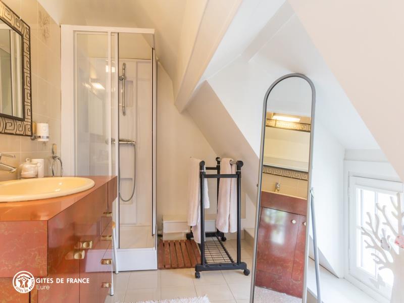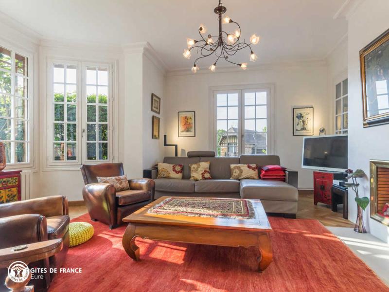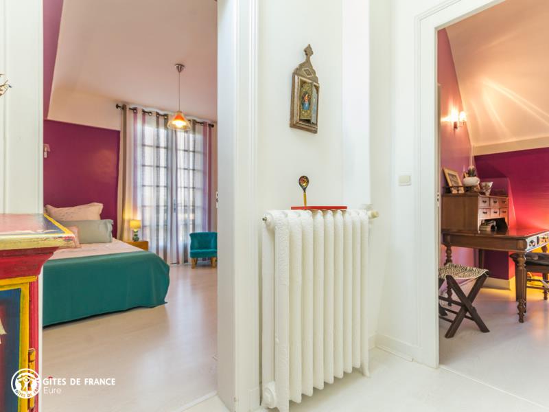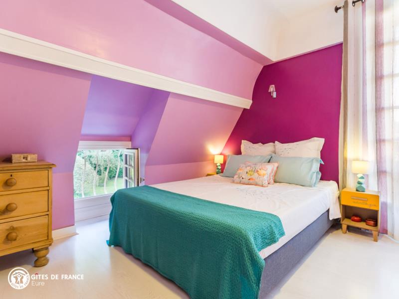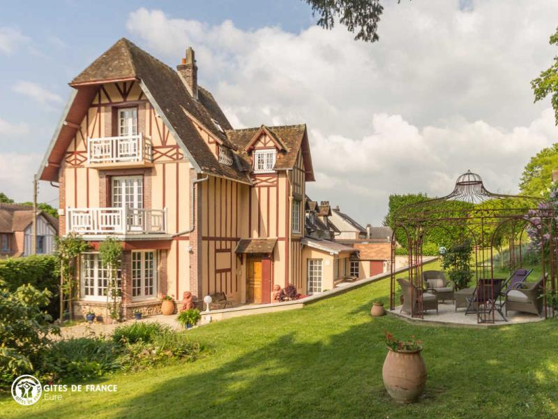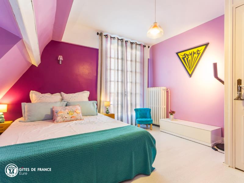 Dans un quartier calme et à l'écart du coeur de ville, Catherine vous accueille sur cette ravissante propriété, véritable écrin de verdure plein de charme. L'élégante maison de style anglo-normand domine le jardin paysager aux clins d'oeil orientaux avec son petit pont sur la pièce d'eau, véritable invitation à la flânerie et à la détente : le matin, à l'occasion d'un petit déjeuner en plein air, dans le salon sous le kiosque après une bonne journée, dans un transat sous les pommiers ou pourquoi pas lors d'une partie de pétanque. Vous apprécierez les petit-déjeuners gourmands et joliment présentés. A deux pas, vous profiterez de tous les services de la ville ou des balades au fil de l'Iton. Catherine est golfeuse et saura vous conseiller parmi les plus beaux spots alentours : golf d'Evreux, à 3 km, le Vaudreuil, Gaillon ou Champ de Bataille. Sur place, la voie verte vous promet de belles balades à pied ou à vélo. Pour un séjour sans voiture, la gare n'est qu'à 1 km.