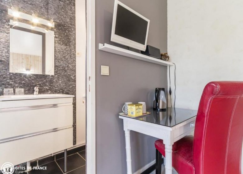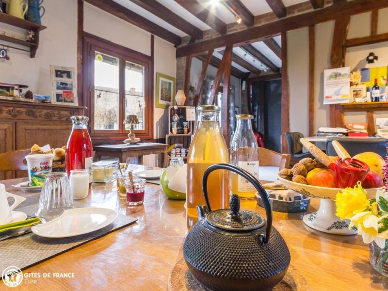 Au cœur du Parc des Boucles de la Seine Normande et son environnement naturel unique, découvrez ces charmantes chambres d'hôtes aménagées dans un joli bâtiment à colombage, typiquement normand. A seulement 200m, vous accédez à un superbe panorama surplombant la vallée de Seine. Ici, les activités ne manquent pas : randonnée pédestre ou à vélo pour les plus sportifs (Françoise met à votre disposition deux vélos taille adulte), ou bien trampoline, ping-pong et jeux de société, vous attendent sur place. Le petit déjeuner gourmand, à base de bons produits frais et locaux, est servi dans la cuisine de vos hôtes.