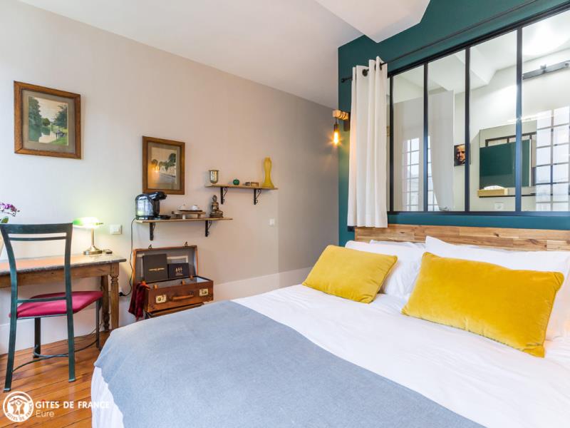 Au coeur du Petit Andelys, à deux pas de la Seine, la Maison Carpe Diem fait partie de ces lieux où l'on se sent tout de suite bien, où l'on pose ses valises sereinement avec le sentiment d'être au bon endroit. Bruno et Laurent vous réservent un accueil attentif et chaleureux. Dès l'arrivée, vous êtes dans l'ambiance : canapés cocoon près d'une petite flambée, teintes feutrées, jolies lumières, belles matières, boiseries nature, … l'œil se perd dans la déco et découvre avec plaisir les détails, les objets. La superbe véranda et son esprit dedans-dehors est une pièce vraiment agréable face au charmant jardin clos de murs et au Château Gaillard. Aux 1er et second étages de cette maison pleine de charme, les chambres, dont 2 suites, offrent une déco contemporaine et un confort haut de gamme. Chacune marie élégamment meubles et objets anciens et design, de famille ou rapportés de voyages lointains. Petit-déjeuner et table d'hôtes généreux, à base de bons produits choisis, souvent locaux.