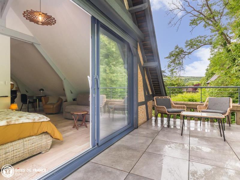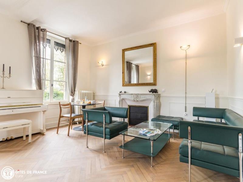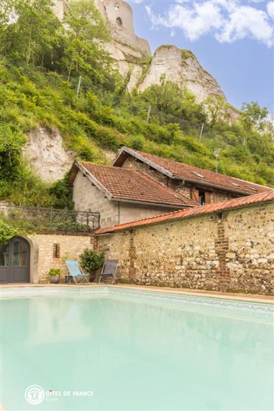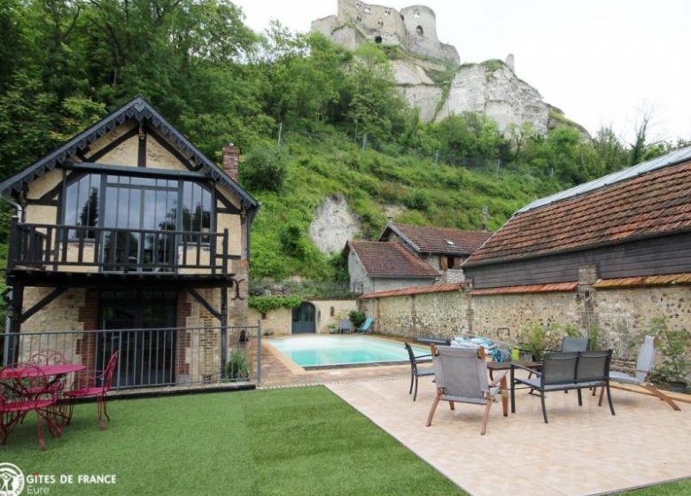 La Villa du vieux château vous ouvre ses portes : vous serez sous le charme de cette propriété d'exception nichée entre la Seine et les côteaux crayeux de la Seine sur laquelle veille le Château Gaillard, juste au dessus ! Bien connue des Andelysiens, cette belle maison bourgeoise a retrouvé toute sa superbe. Elisabeth et sa famille ont créé un cocon élégant et accueillant à l'atmosphère chaleureuse ; le caractère de la maison (beaux carreaux de ciment, porte ancienne au joli vitrage coloré, cheminées et escalier d'époque) se marie parfaitement à des meubles design ou rétro. Les trois chambres sont de vrais écrins douillets : tons clairs et doux, jolies matières et toujours le souci de votre confort. Chacune a son petit plus, entre coins détente, baignoire balnéo ou grande terrasse privée avec vue incroyable sur la Seine et toujours le château. Dès les beaux jours, la piscine sera appréciée après vos balades dans cette région magnifique. Sur place, commerces et restaus sympas.