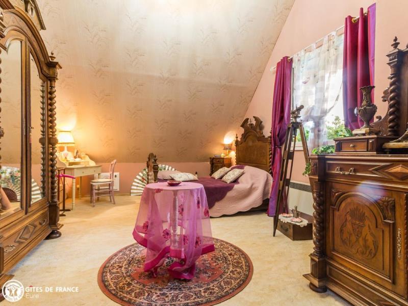 Un quartier paisible et boisé dans un petit village sympa dans la campagne mais à deux pas d'Evreux, voici le cadre que vous propose "les Bosquets", jolie maison d'hôtes où vous accueillent chaleureusement Jacqueline et Gérard. Pour une étape ou un séjour, vous passerez ici des moments agréables dans une suite spacieuse avec, rien que pour vous, un salon et une grande chambre mansardés et confortables. Au programme : repos dans le très joli jardin fleuri et arboré aux beaux jours, pause détente et lecture dans votre salon, randonnée dans la jolie campagne environnante, par exemple via le GR 222 qui passe au bout de la rue, ou visite des pépites de la région, entre Evreux et ses bords d'Iton, exceptionnel château du Champ de Bataille ou petite ville typique de Conches-en-Ouche. Autre moment fort : un petit déjeuner gourmand, à la hauteur des petites attentions de Jacqueline. L'adresse est dog-friendly, dans le respect de Texas, le chien de la maison.