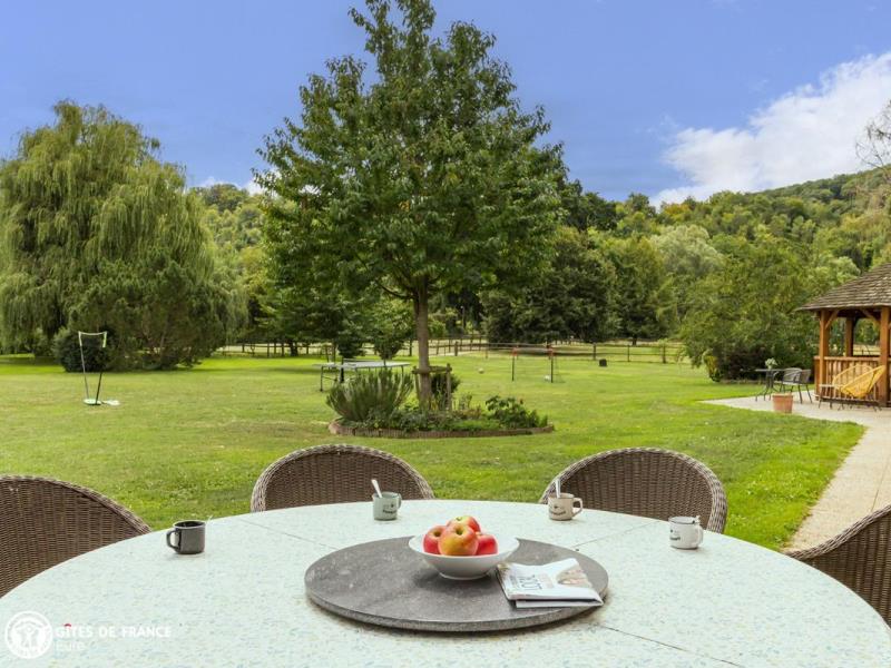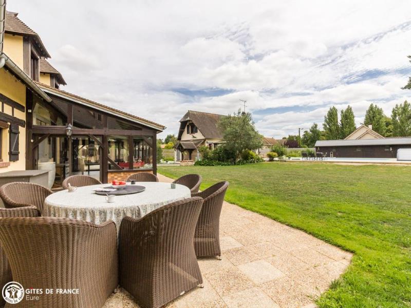 Une pause nature au cœur de la Vallée de l'Eure, c'est la promesse de cette charmante maison d'hôtes avec piscine chauffée. Magali et Gilles vous accueillent au sein de leur vaste propriété d'1,8 hectares en bord de rivière où les activités ne manquent pas : baignade bien sûr, mais aussi ping-pong, badminton, pétanque ou encore visite à Noisette et Aura les deux ânesses de la maison ! Tout le monde trouvera sa place : les sportifs apprécieront partir à la découverte des chemins de randonnée et des itinéraires cyclables des alentours tandis que les amateurs de repos se prélasseront dans l'espace détente ou sur l'un des transats bordant la piscine. Chaque matin, délicieux petits-déjeuners préparés par Magali avec gâteaux maison, viennoiseries et produits salés, pour tous les goûts. Plein de jeux dedans et dehors pour s'amuser. La région est vraiment à découvrir ; on aime se perdre sur les petites routes pittoresques et bucoliques ou se promener dans les petites villages typiques.