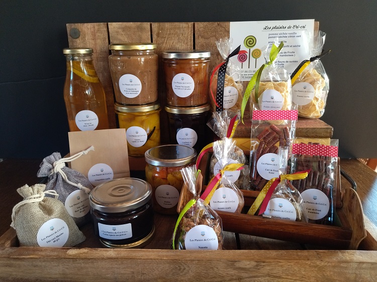 Cri Cri réalise ses confiseries maison à base de fruits déshydratés et confits qu'elle travaille elle-même : arôme des sucres des pommes fait maison, fruits confits séchés naturellement (rhubarbe ananas), confitures sans peau et sans grains, cuir de fruits, pickles, dip, sirop au 2 citrons et sirop de fleurs de sureau en saison …