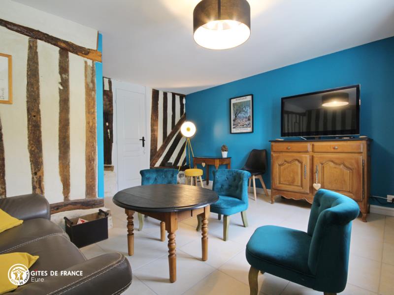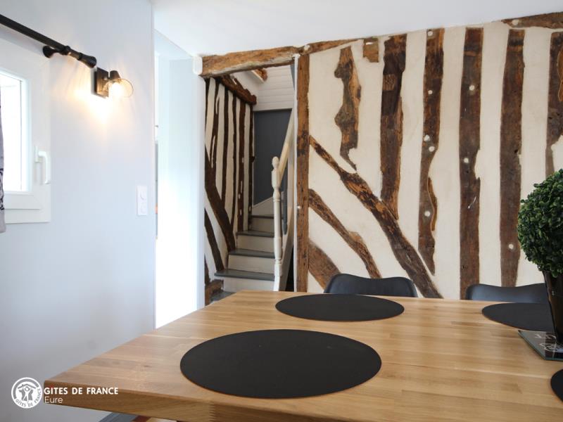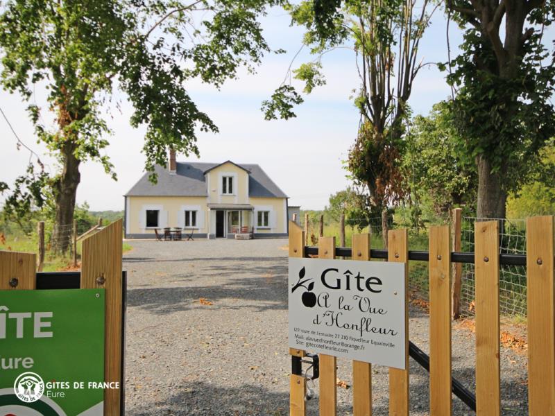 "A la vue d'Honfleur" : c'est tout à fait ça ! Ce gîte très sympa vous offre, depuis la maison comme le jardin, une vue superbe sur l'estuaire de la Seine, le Pont de Normandie, les toits d'Honfleur et la côte de Grâce. Le lieu idéal pour un temps de repos ou de découvertes à deux pas de la mer, dans un petit village au coeur de la campagne normande typique. La maison , elle, est vraiment agréable et chaleureuse : Sophie et Yannick l'ont pensée pour que vous y passiez un excellent moment. Confortable, joliment décorée apportant les notes actuelles dans les traces de l'ancien, elle est aussi très bien équipée. Côté jardin, l'espace est là, entièrement clos, dégagé devant ou en petite terrasse à l'arrière à côté de la cuisine, bien pratique. Honfleur n'est qu'à 5 km, pour une balade sur le port mythique, la mer, un petit restau, une visite du Naturospace ou un peu de shopping Outlet.