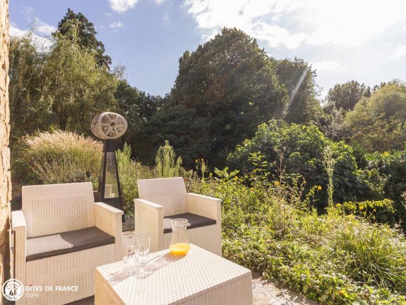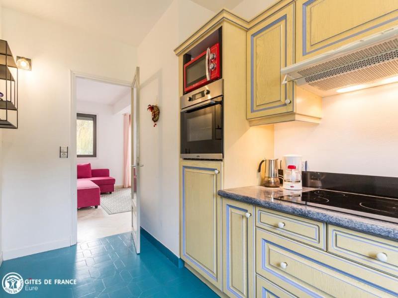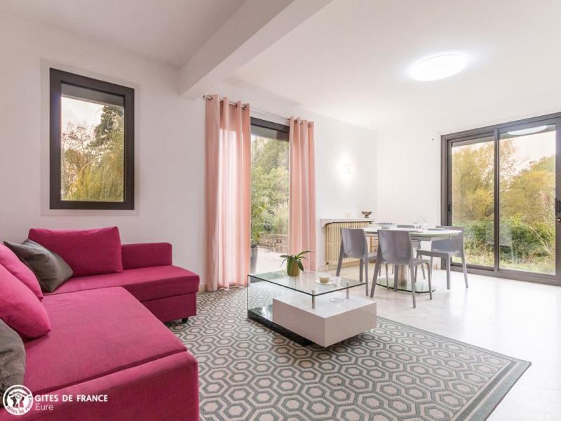Faites une pause au fil de la vallée de l'Avre sur cette belle propriété, Arcadia, au grand jardin qui longe la rivière. Vous profitez ici des atouts de la campagne, avec le vert tout autour, comme des services, loisirs et commerces de cette petite ville, charmante. Ce gîte est un bel appartement en rez de jardin, installé dans la grande villa de Thierry, originale car toute parée de granite rose. Vous y retrouvez les codes de cette maison d'architecte, ses pièces généreuses et une belle luminosité. L'équipement est à la hauteur, comme ce lit king size ou cette belle salle d'eau avec douche à l'italienne. La singularité du lieu se poursuit dans le vaste jardin arboré où vous découvrez les créations de Thierry, artiste sculpteur. Tout au fond, l'Avre et sa jolie vue. Vous serez séduits par cette jolie région des portes de Normandie avec notamment Verneuil d'Avre et d'Iton à 20 km, un des "Plus Beaux Détours de France" ; également plein de balades charmantes comme sur le GR22.