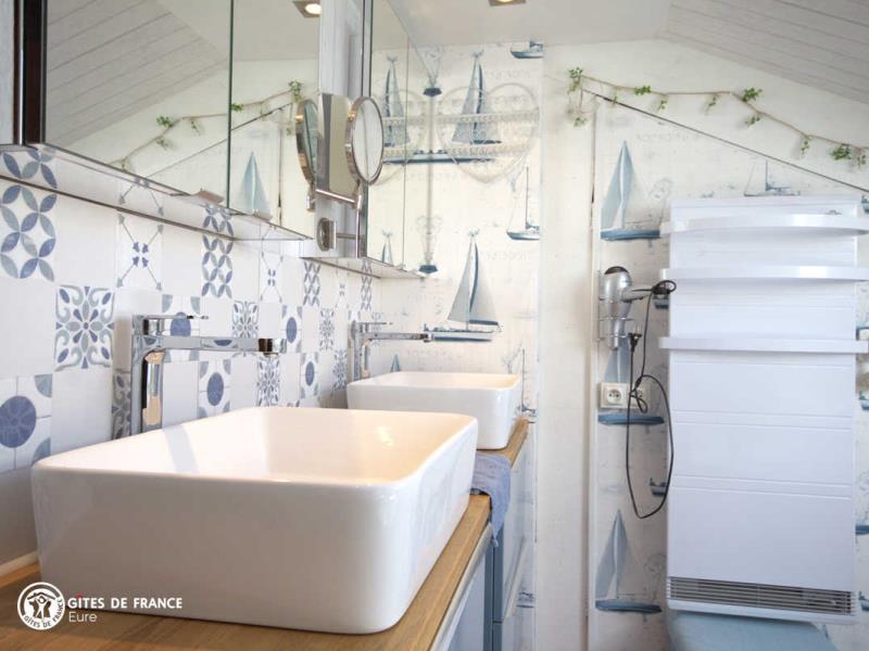 Située au cœur de l'exploitation des propriétaires, cette jolie maison à colombages est entourée de vergers de pommiers : presque une carte postale normande ! Au calme dans la campagne tout en restant proche de la ville, vous séjournerez ici dans une ambiance à la fois contemporaine et à l'esprit campagne. Aux beaux jours, vous profiterez d'une grande terrasse aménagée avec tout le mobilier pour profiter du grand air. L'hiver venu, c'est le beau salon avec cheminée qui vous accueillera. Quant au sauna à infrarouges, il vous offrira un réel moment de bien-être pendant que les enfants s'amusent dans l'espace pallier aménagé. Au départ du gîte, de belles balades s'offrent à vous et un peu plus loin, une visite de Bernay s'impose pour découvrir cette belle Ville d'Art et d'Histoire aux maisons à pans de bois. De nombreux petits commerces sympathiques vous y attendent.