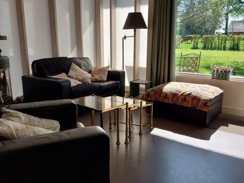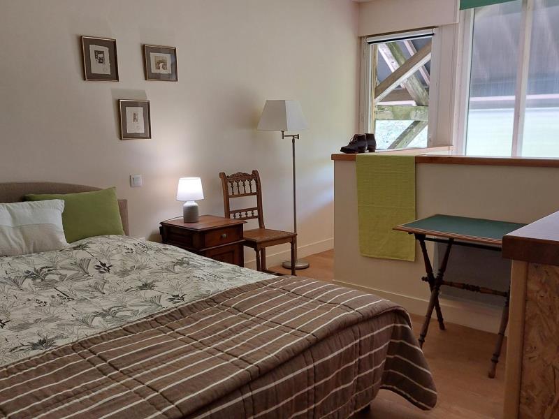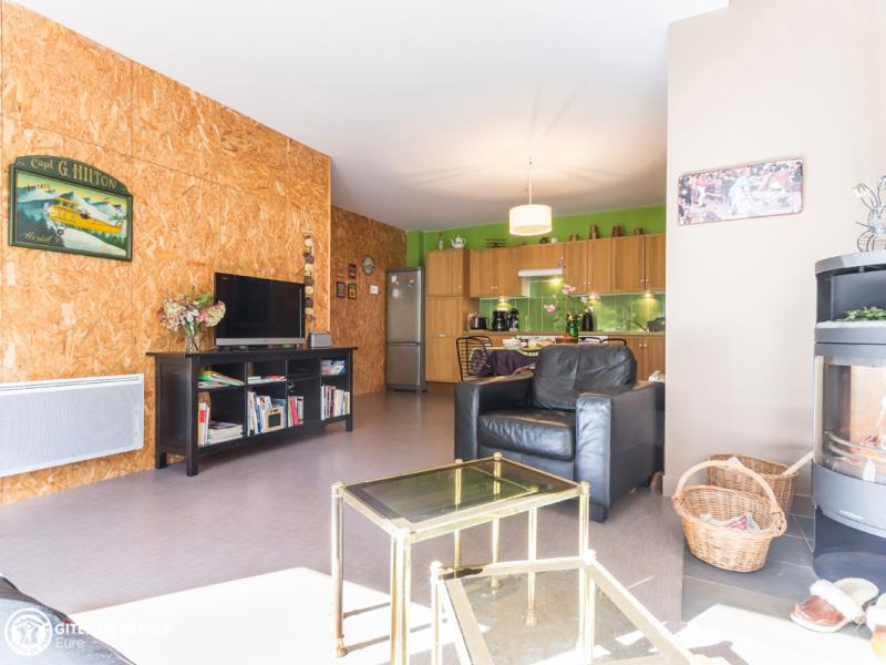 Ce petit coin de campagne entre les vallées de la Calonne, de la Risle et de la Charentonne a beaucoup de charme. Au bout d'un petit chemin, cette ancienne charretterie du XIXème siècle est aujourd'hui un lieu de vacances vraiment sympa et très original. Vous aimerez sa conception aux beaux volumes très ouverts autour de la pièce de vie et sa luminosité gagnée grâce à vitrages et parois translucides qui ouvrent largement sur le jardin. Carole, votre hôte, est passionnée de déco et a su créer une ambiance très chaleureuse autour de ces matériaux originaux comme les panneaux de bois modernes : belles matières, cuir, bois, couleurs très nature, mobilier et objets de déco à la fois chinés et contemporains. Le résultat est lumineux et très confortable autour de beaux espaces : ici chaque chambre a ses sanitaires. La grande terrasse fait le lien avec le jardin, arboré et joliment fleuri aux beaux jours. Plein de balades à faire tout autour et de jeux pour petits et grands.