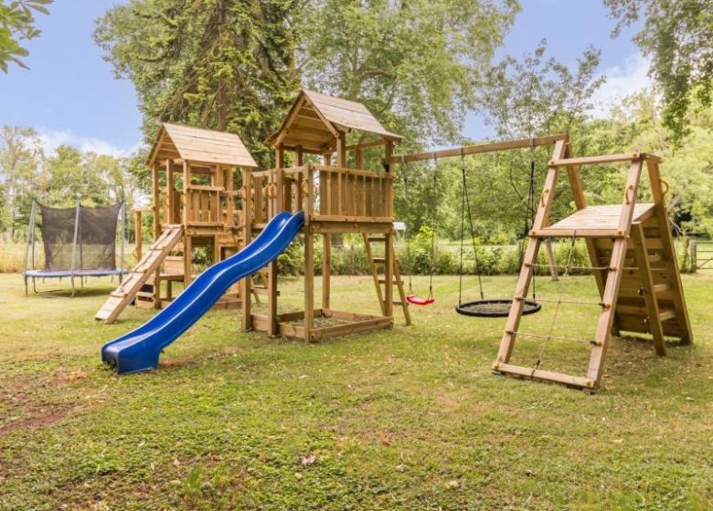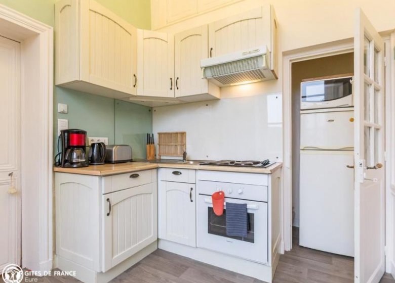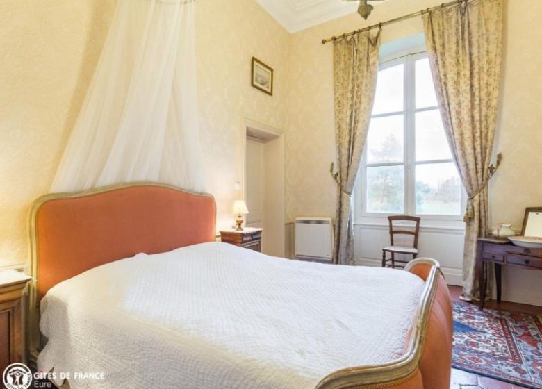 La vie de château, c'est ce que vous propose ce gîte ! Situé au 1er étage de ce beau château du XVIII ème siècle, il vous offre toute la magie du lieu avec son mobilier ancien, ses tomettes, gravures et grandes fenêtres qui ouvrent sur la cour d'honneur, tout en conservant un confort très actuel. Les propriétaires vous parleront avec passion de cette maison de famille où se côtoient douves, lavoir, fournil et moulin au milieu du calme de la nature environnante. Une vaste propriété pleine de jeux vous y attend, pour le plus grand plaisir des enfants qui vont adorer l'aire de jeux en bois avec cabanes perchées, pont de singe, toboggan et balançoires ! L'hiver venu, c'est au coin du feu que la cheminée vous apportera chaleur et réconfort. Aux alentours, les découvertes touristiques ne manquent pas: la Vallée de l'Eure et ses collines boisées, mais aussi Giverny et les Jardins de Claude Monet, incontournables.