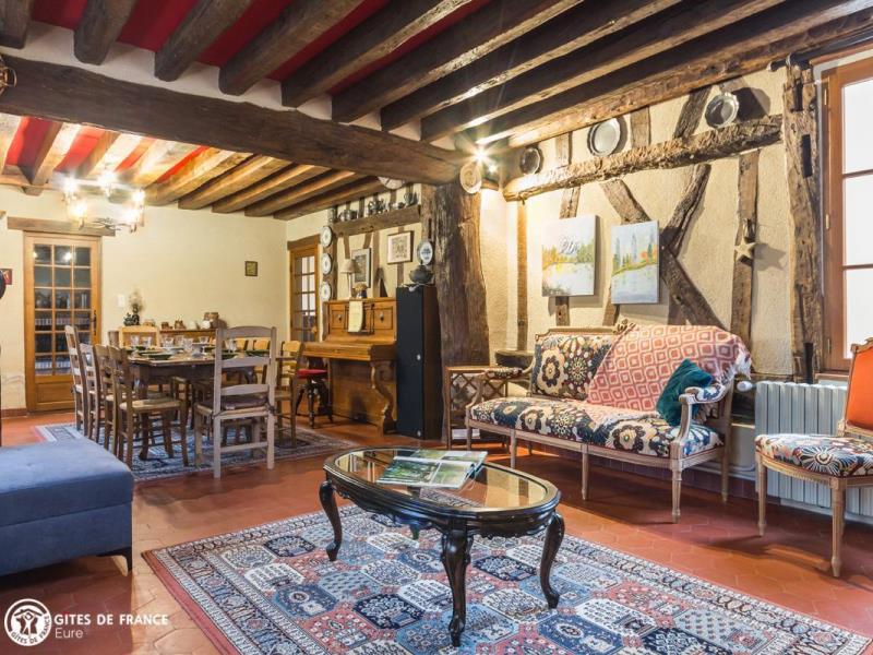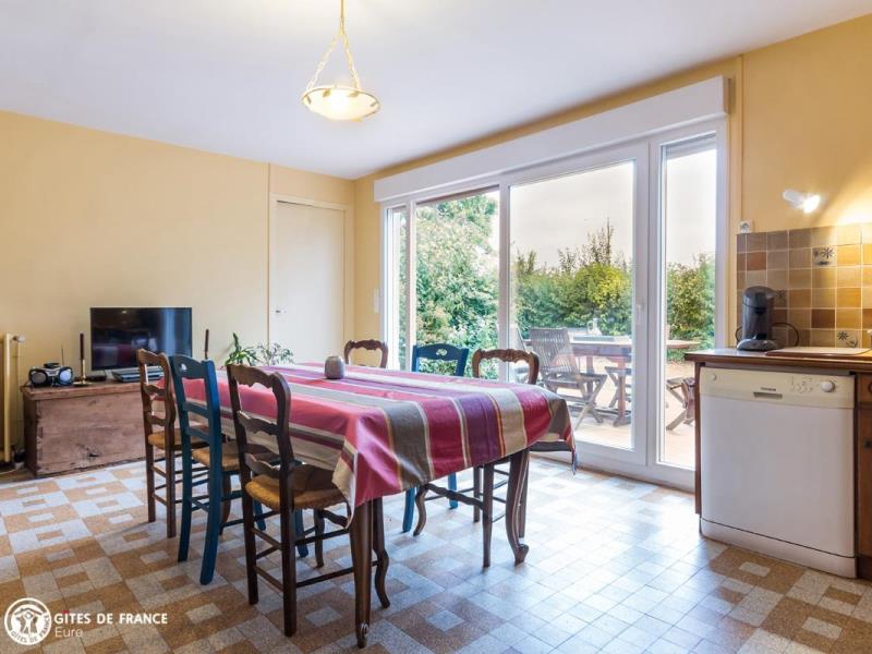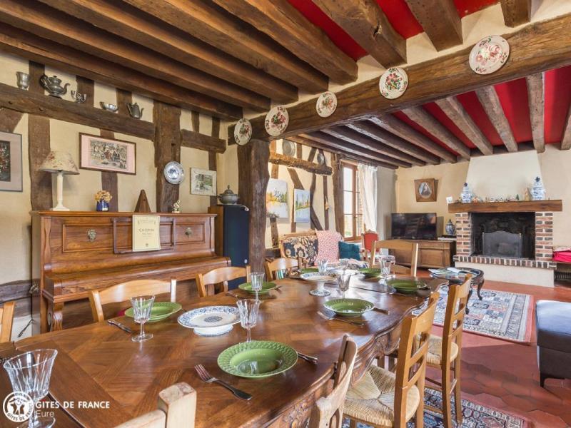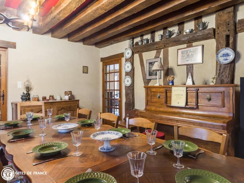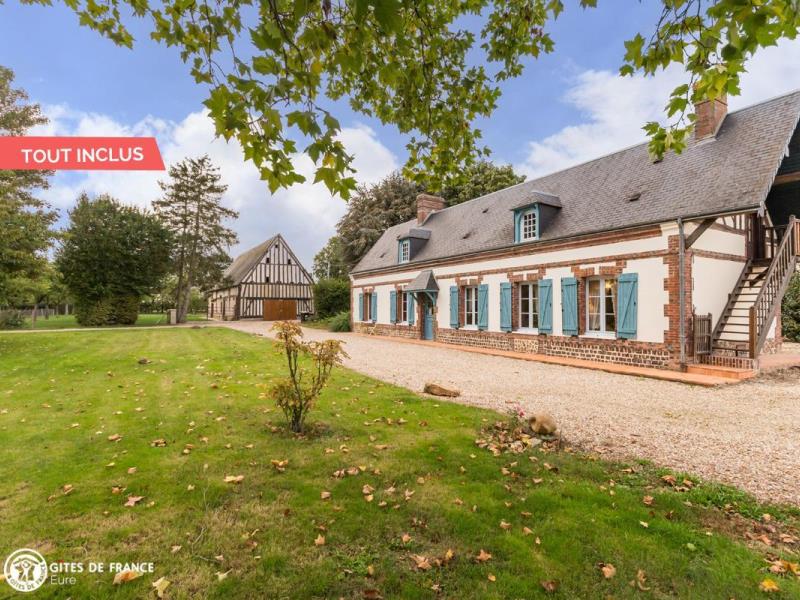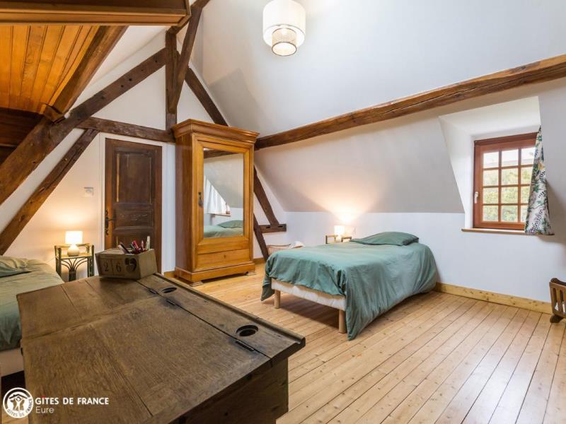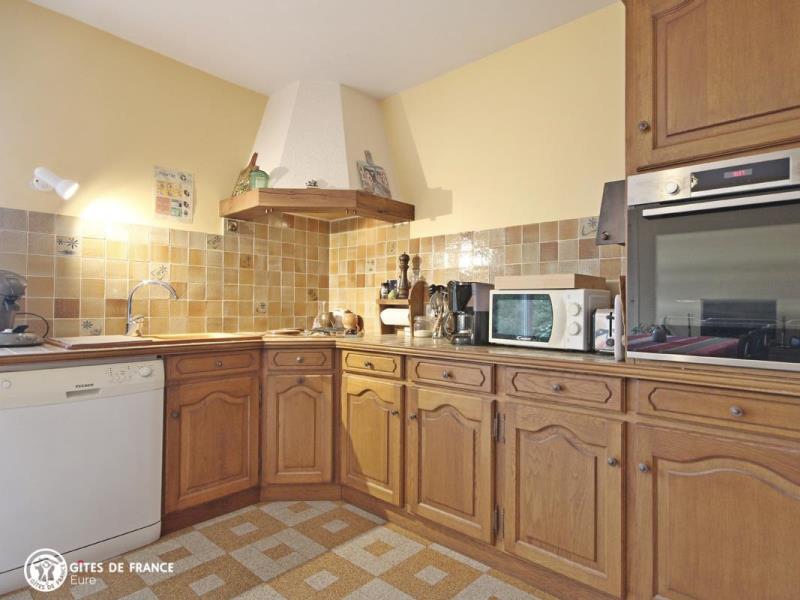 Dans un hameau des Baux-de-Breteuil, village clairière au milieu d'une vaste forêt, vous serez sous le charme de cette grande maison de vacances à l'esprit familial très sympathique. Longère traditionnelle de cette région, elle cache derrière ses jolis volets bleus l'ambiance chère aux maisons de campagne : chaleur des tomettes et poutres apparentes, élégants meubles de famille, collections de poteries en grès ou d'assiettes murales anciennes et belles cheminées. Vous aimerez ses pièces spacieuses, les pièces de vie comme les chambres, son confort tout à fait actuel, et ce grand jardin arboré avec ses différents espaces : espace jeux autour du portique, repas sur la terrasse prêt à accueillir toute la tribu, ou repos à l'ombre des grands arbres. Sans oublier les petites attentions d'Elisabeth qui a pensé aux loisirs des plus petits. Dans le village, une épicerie ouvre le matin, pratique ; pourquoi pas aller faire vos emplettes à vélo ? Egalement plein de balades à faire tout autour.