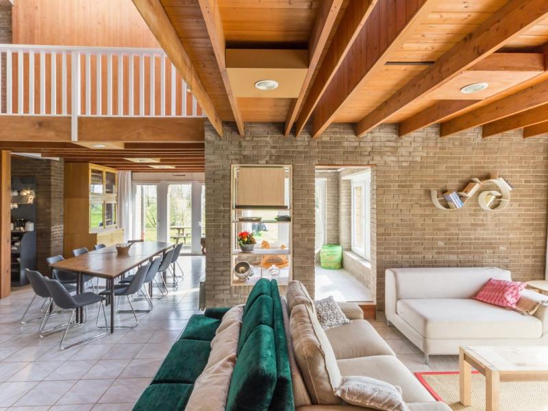 C'est un lieu exceptionnel ! Cette incroyable maison est une oeuvre d'architecte des années 70. Toute ouverte sur la nature, sur un parc boisé de 4 hectares, au calme, elle est baignée de lumière. Faite de briques dans une construction très technique, la maison est vraiment spacieuse : elle offre de belles pièces de vie à partager, mais aussi de nombreux recoins pour un petit moment "pour soi". La décoration, contemporaine, est très originale ; elle fait la place belle à la broc' et aux ingénieuses trouvailles de Nathalie, dans des teintes toujours douces et de belles matières. Détente et bien-être seront également au programme, avec un sauna et un vélo éliptique. Vous aimerez apercevoir les animaux sauvages qui s'aventurent à proximité, comme les chevreuils, et profiter des jeux dans le vaste jardin boisé ; grande terrasse sympa. Tout près, les Châteaux d'Harcourt et son arboretum ou de Champ de Bataille avec ses fabuleux jardins à la Française : le GR26, sur place, vous y amène.