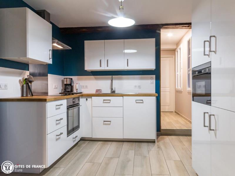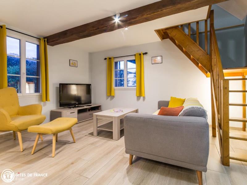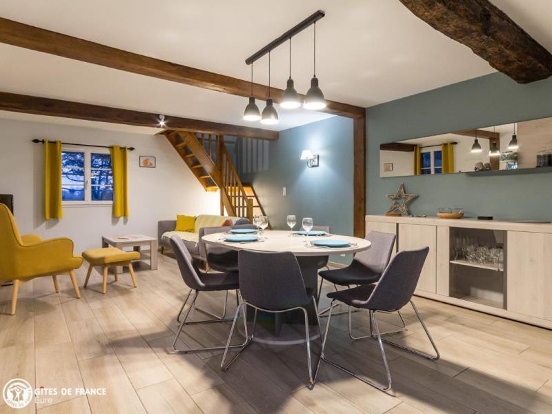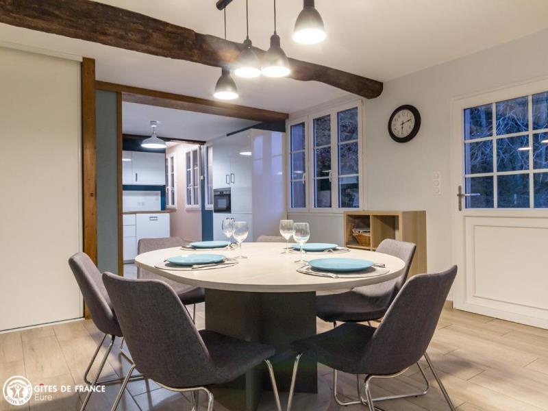 Dans le parc arboré du château de Lenteuil, cette jolie maison du 19ème a été totalement rénovée. Si l'architecture et les matériaux d'origine ont été respectés, l'aménagement intérieur est résolument contemporain. Agencement, coloris, mobilier, accessoires donnent une ambiance lumineuse et actuelle très agréable et un vrai confort. Au coeur d'un joli jardin clos arboré avec une grande terrasse qui vous permet de profiter pleinement des beaux jours, à l'écart, vous êtes aussi dans le parc du château de Lenteuil, superbe avec ses grands arbres séculaires. L'accueil attentionné d'Isabelle et Thierry est au rendez-vous de cette très belle adresse. Le pays du Roumois est une belle région à découvrir, entre la côte et la vallée de la Seine, avec de superbes paysages entre champs cultivés, forêts et bois et de somptueux panoramas sur le fleuve.