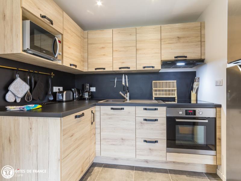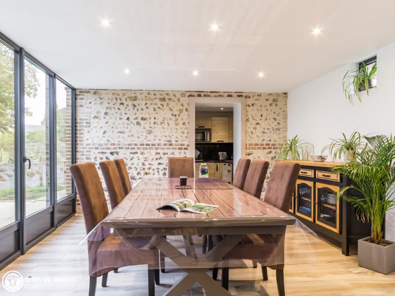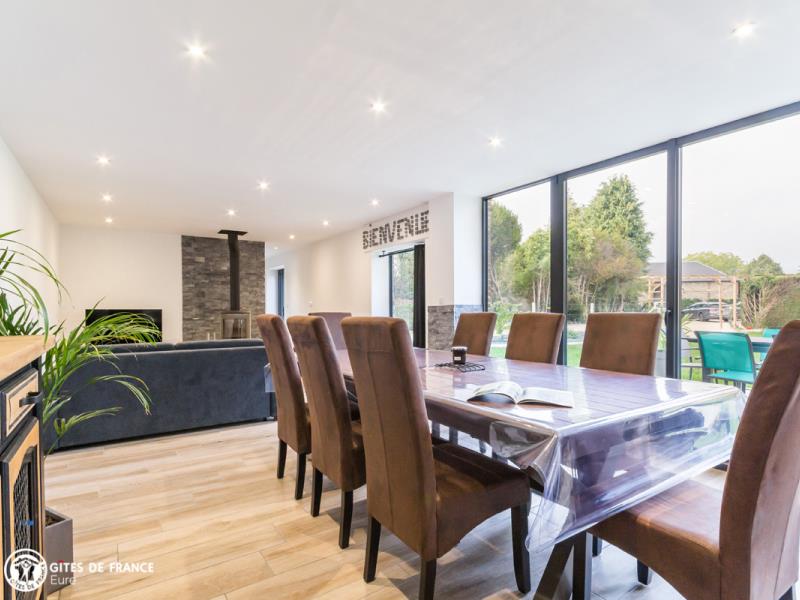 Marie et Jérôme ont fait de cette ancienne grange un vrai nid douillet avec tout le charme de l'ancien, mêlant ambiance moderne avec murs en pierre et poutres apparentes. Amis et familles seront séduits par ce grand gîte aux espaces modulables selon vos besoins. Le petit plus, une vraie logique écologique pour cette restauration afin de réduire son impact environnemental. Côté jardin, tout est fait pour en profiter : terrain de pétanque, molkky, coin abrité avec jeux de fléchettes près de la mare paysagée, sans oublier le spa ! Amateurs de jeux et challenges, n'hésitez pas à demander à vos hôtes qui proposent des courses d'orientations et le Flipou-Lanta ! Vous êtes dans un petit coin adorable de l'Eure, entre Les Andelys et son château Gaillard, les bords de Seine et le lac de Poses... de belles balades en perspective avec également le GR®2 à proximité ! Ici, les produits locaux normands sont à portée de main avec 2 fermes juste à côté et leurs bons produits laitiers et cidricoles.