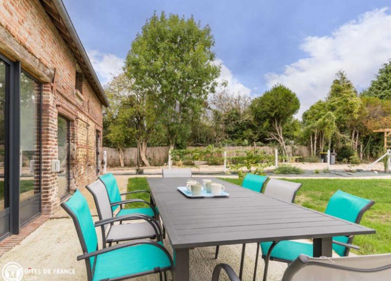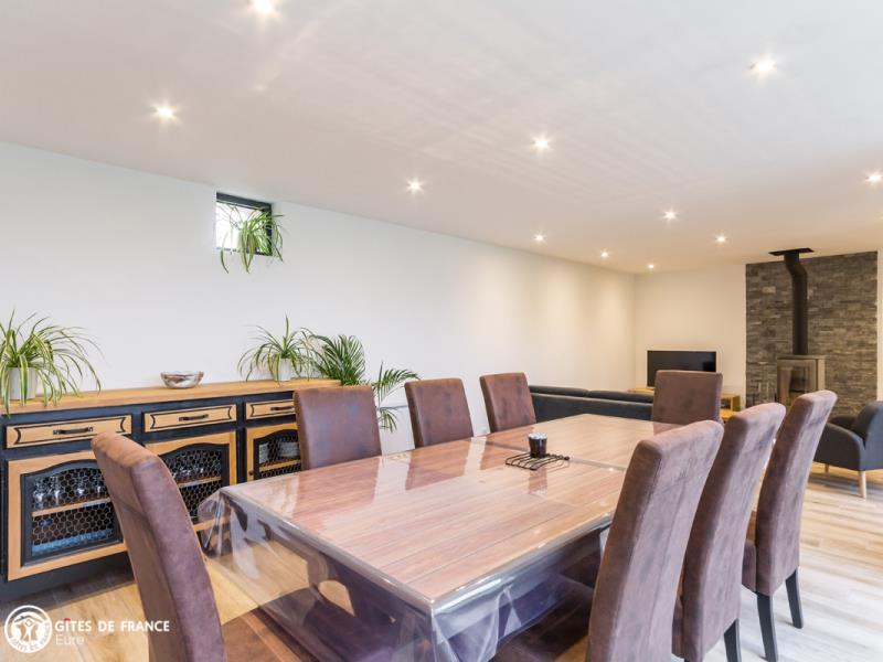 Marie et Jérôme ont fait de cette ancienne grange un vrai nid douillet avec tout le charme de l'ancien, mêlant ambiance moderne avec murs en pierre et poutres apparentes. Amis et familles seront séduits par ce grand gîte confortable aux espaces modulables selon vos besoins. Le petit plus, une vraie logique écologique pour cette restauration afin de réduire son impact sur l'environnement. Côté jardin, tout est fait pour en profiter : terrain de pétanque, molkky, coin sympa abrité avec jeux de fléchettes près de la mare paysagée ! Amateurs de jeux et challenges, n'hésitez pas à demander à vos hôtes qui proposent des courses d'orientations et le Flipou-Lanta ! Vous êtes dans un petit coin adorable de l'Eure, entre Les Andelys et son château Gaillard, les bords de Seine et le lac de Poses... de belles balades en perspective avec également le GR®2 à proximité ! Ici, les produits locaux normands sont à portée de main avec 2 fermes juste à côté et leurs bons produits laitiers et cidricoles.