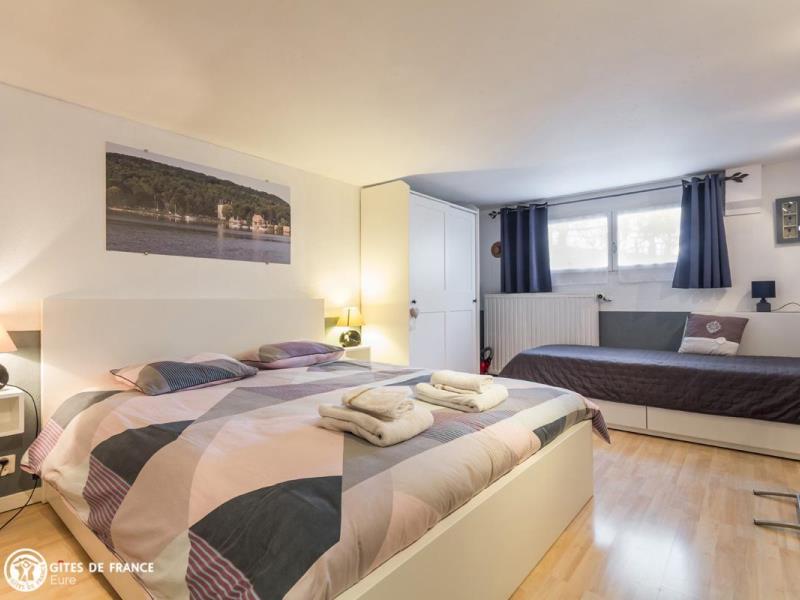 Vous découvrirez ici un gîte original et agréable, au calme, dans cet environnement naturel et historique de la vallée de Seine. . A deux pas, les jardins de Claude Monet et le musée des Impressionnismes de Giverny, les châteaux de Gaillon, Bizy ou des Andelys et sur place des chemins vous mèneront au chemin de halage en bord de Seine ou sur le plateau vers des panoramas remarquables. Christiane & Jean-Pierre auront à cœur de rendre votre séjour des plus agréables. Le gîte, confortable et accueillant, ouvre sur le jardin privatif clos et arboré (100 m² dédiés au gîte avec mobilier de détente). Terrasse couverte abritée. De nombreux jeux extérieurs raviront les petits.