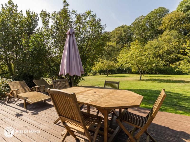 Cette jolie maison à pans de bois vous offre un vrai moment de détente en lisière de la belle forêt de Montfort. Vous aimerez cet environnement privilégié, au vert, mais proche de la vallée et ses petits bourgs dynamiques : grand jardin avec son verger, sympa pour la cueillette en saison, avec une belle terrasse en bois et son mobilier de détente pour en profiter . La maison est confortable et parfaitement équipée : Pascal y est attentif. Les enfants adoreront rendre visite aux lapins dans leur enclos, aux poules et aux oies, ou au fond du jardin aux poissons rouges (bassin protégé). Egalement pour eux, le portique et son tobogan, les ballons, le bac à sable. Pascal vous prête également des vélos (3 pour adultes et 2 pour enfants) pour une balade tous ensemble dans les petits chemins alentours. Les départs de randonnées ne manquent pas au travers des forêts de pins de l'espace domanial forestier. S'ajoutera peut-être la surprise de la visite d'un chevreuil près du gîte.