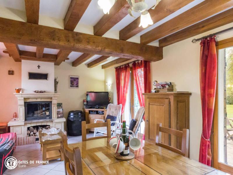 Cette jolie maison à pans de bois vous offre un vrai moment de détente en lisière de la belle forêt de Montfort. Vous aimerez cet environnement privilégié, au vert, mais proche de la vallée et ses petits bourgs dynamiques : grand jardin avec son verger, sympa pour la cueillette en saison, avec une belle terrasse en bois et son mobilier de détente pour en profiter. La maison est confortable et parfaitement équipée : Pascal y est attentif. Les enfants adoreront rendre visite aux lapins dans leur enclos, aux poules et aux oies, ou au fond du jardin aux poissons rouges (bassin protégé). Les départs de randonnées ne manquent pas au travers des forêts de pins de l'espace domanial forestier. S'ajoutera peut-être la surprise de la visite d'un chevreuil près du gîte. La vallée de la Risle, juste en bas, vous mènera vers de jolies balades : Pont Audemer, Brionne, le Bec Hellouin, ou un peu plus loin vers les boucles de la Seine.