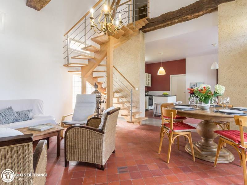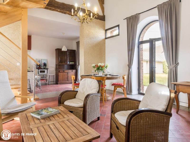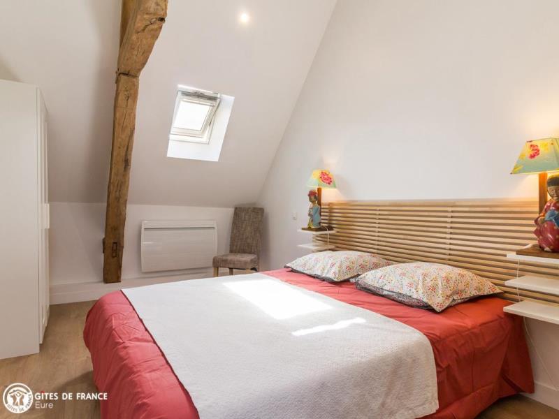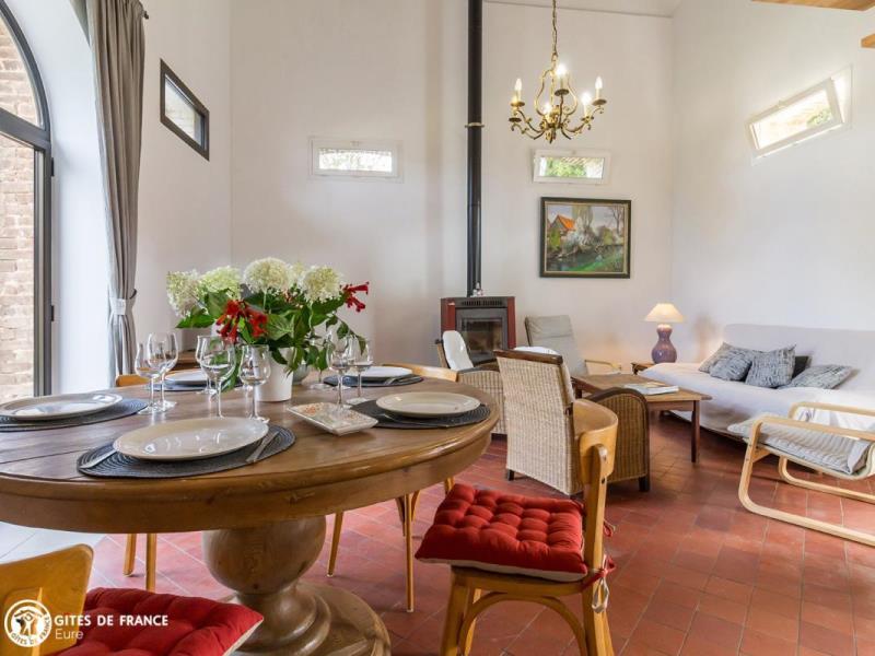 Avec ses tomettes et son salon cathédrale aux poutres apparentes, cette jolie bâtisse du XIXème s., toute en pierre, a su conserver le charme d'une authentique maison de campagne, rénovée avec goût dans le respect des matériaux d'origine. Donatienne, avec ses 2 petits corgis, vous y accueille avec plaisir, le temps d'un séjour ressourçant et vivifiant. Le gîte se trouve sur le domaine du Hazey, propriété agricole et forestière où vous vivrez au rythme estival de la moisson. Vous profiterez également de moments conviviaux dans le jardin et sur le domaine : badminton, pétanque, bac à sable ou ballon, jogging, balades le long des champs. A deux pas, Gaillon est riche en commerces et en activités pour toute la famille : l'Aquaval, golf, randonnée en bord de Seine, cinéma ou visite du centre historique à l'architecture médiévale et le château, premier château de la Renaissance de France. Important : Le gîte est équipé d'une chambre, salle d'eau et WC pour personne à mobilité réduite.