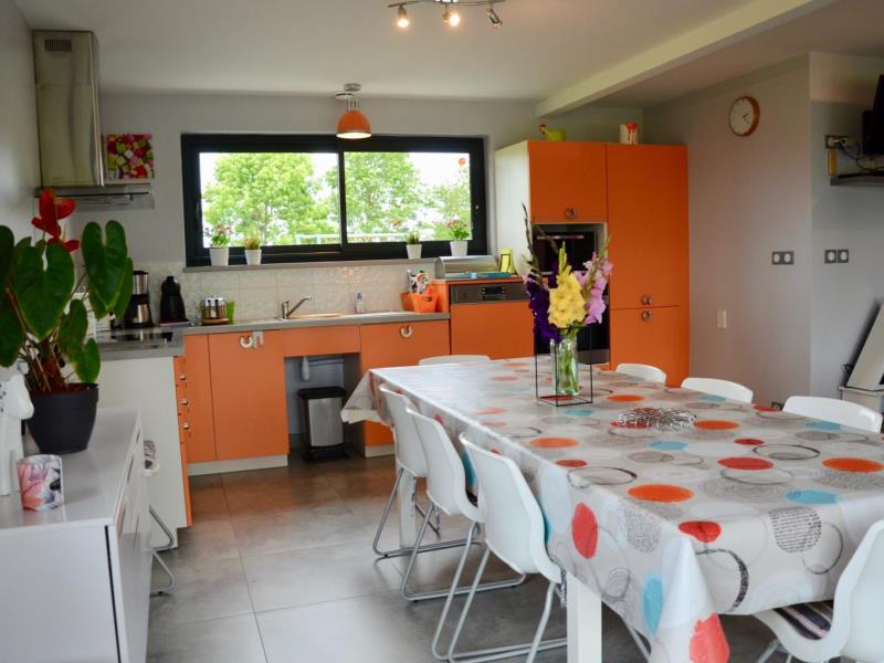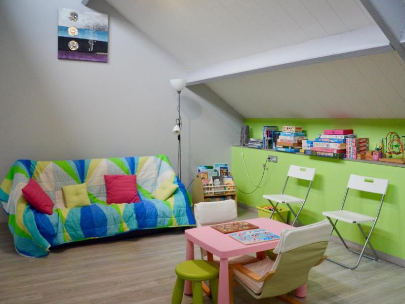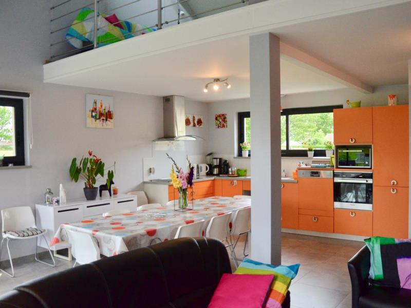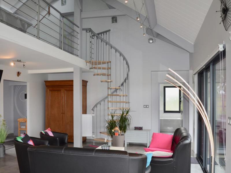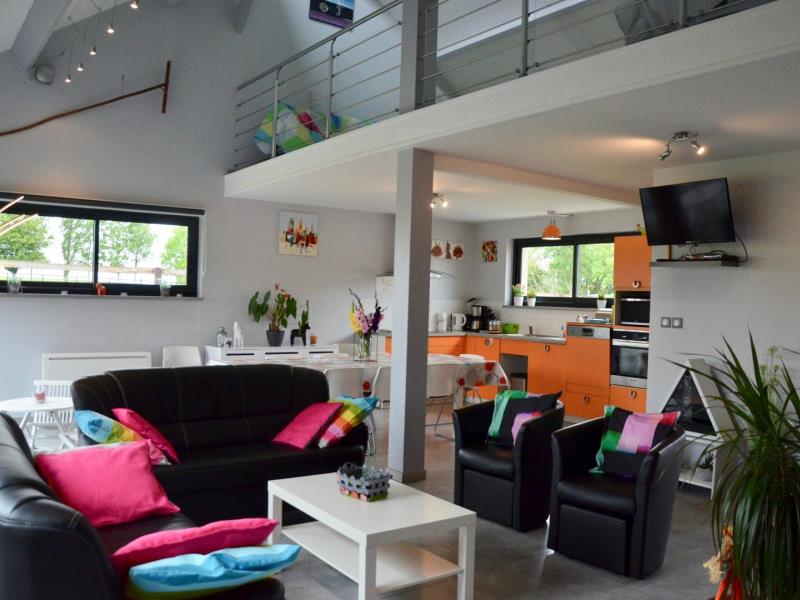 Contemporaine et ouverte sur la campagne cette maison est étonnante à plus d'un titre. Lumineuse et toute ouverte sur le jardin et la campagne, avec une décoration très moderne et colorée, il y règne une douce ambiance. Elisabeth et Philippe l'ont pensée et équipée comme une vraie maison de vacances avec tout ce qu'on aime y trouver : beaucoup d'espace, pour que chacun se sente bien à l'intérieur comme dans le jardin ou sur la terrasse, beaucoup de jeux entre la salle loisirs en mezzanine avec babyfoot, les jeux de société, les jeux dans le jardin (croquet, portique et toboggan) et le confort des espaces détente sympas du salon et de la terrasse, plein sud : même une petite cheminée électrique pour l'ambiance ! Chaque chambre a ses sanitaires, dont une baignoire balnéo. La maison est passive en énergie et fait appel à des techniques de pointe en termes de conception. Sur la route des chaumières, vous serez à pied d'oeuvre pour découvrir les trésors des bords de Seine.