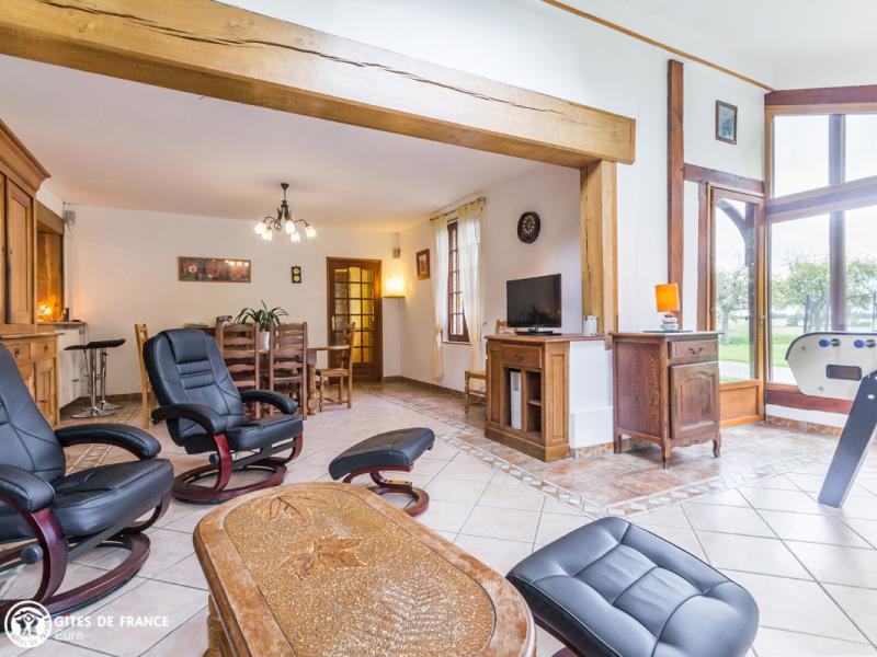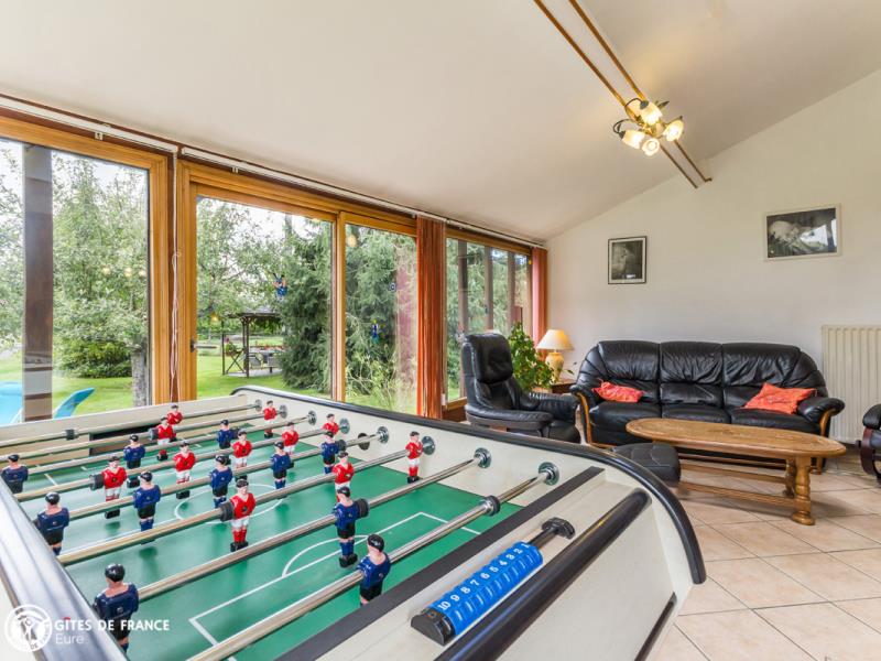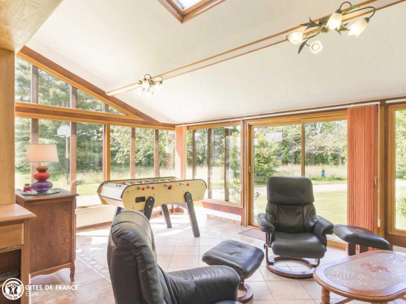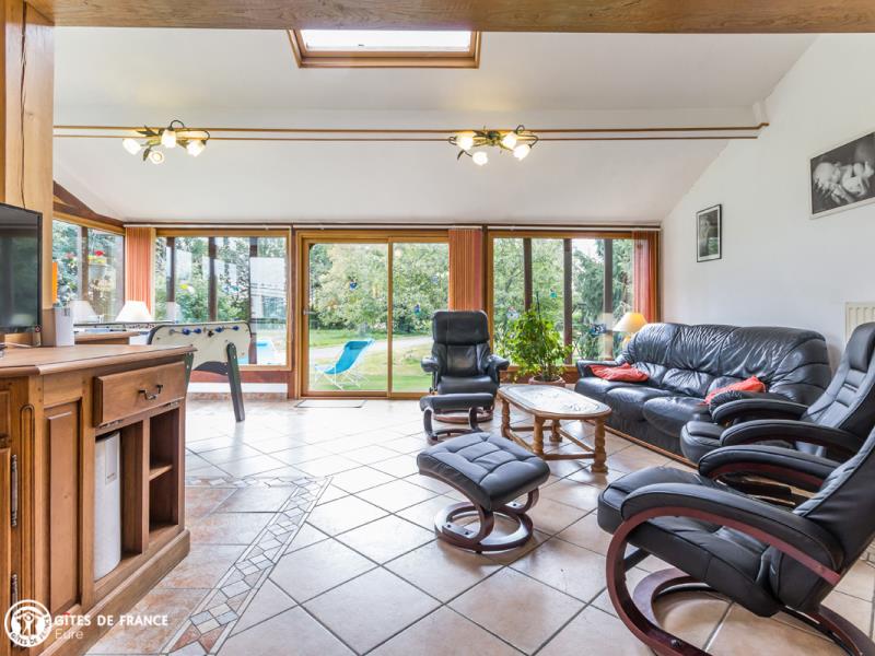 Dans la campagne du Lieuvin, proche de Lisieux, vous serez sous le charme de cette grande maison de vacances. Tout ici est pensé pour votre bien être et vos loisirs pour un vrai moment convivial en famille ou entre amis. Le gîte, jolie maison de maître, est spacieux, lumineux avec un bel espace véranda et très confortable ; chacun y trouvera son petit coin favori. Il est très bien équipé, de la cuisine qui a tout d'une grande, aux équipements bien-être avec la baignoire balnéo, le sauna ou la salle fitness, la salle de jeux avec notamment ping-pong et fléchettes, et les jeux extérieurs (portique, basket, ...), sans oublier le babyfoot ! Vous pourrez aussi profiter de belles balades dans la forêt de 4 hectares attenante ou faire la découverte de Bernay, ville d'art et d'histoire, ou Lisieux, toutes proches. Pascal et Nathalie sauront vous conseiller en fonction de vos envies.