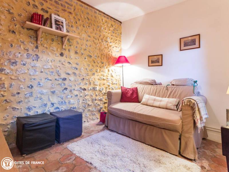 Cette jolie petite maison a beaucoup de charme et vous séduira par l'ambiance chaleureuse qui y règne : tomettes, murs d'origine en briques et silex apparents, poutres, décoration très actuelle mêlée à des éléments anciens. Fanny l'a aménagé avec beaucoup de soin et le souci de votre confort. Dans un petit village du Vexin Normand, vous apprécierez aussi le joli jardin clos de 400 m² propice à la détente ou à de sympathiques repas sur la pelouse ou sous l'abri. Vous êtes ici à deux pas des boucles de la Seine, ses magnifiques panoramas et ses falaises crayeuses, ou de la superbe forêt de Lyons de l'autre côté.
