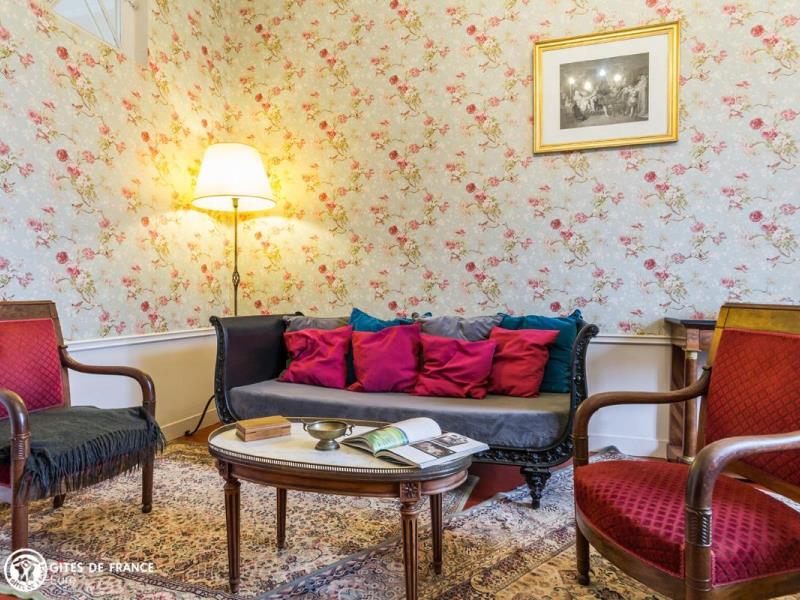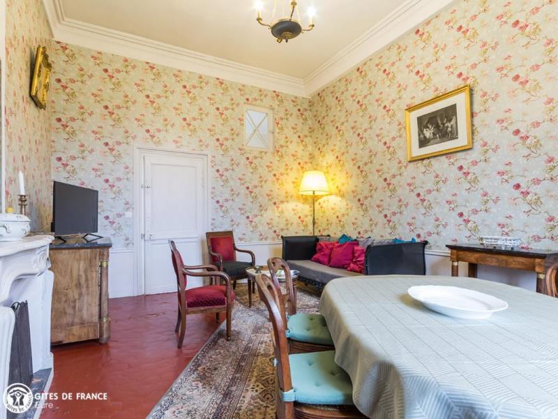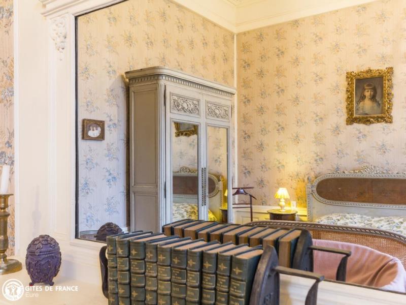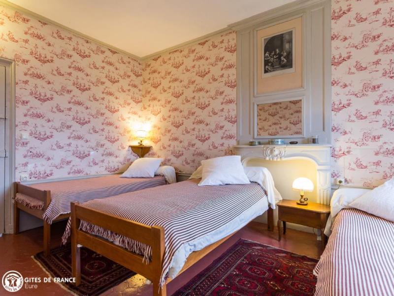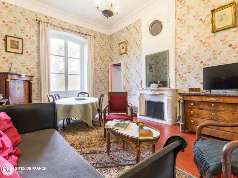 La vie de château, c'est ce que vous propose ce gîte ! Situé au 1er étage de ce beau château du XVIII ème siècle, il vous offre toute la magie du lieu avec son mobilier ancien, ses tomettes, gravures et grandes fenêtres qui ouvrent sur la cour d'honneur, tout en conservant un confort très actuel. Les propriétaires vous parleront avec passion de cette maison de famille où se côtoient douves, lavoir, fournil et moulin au milieu du calme de la nature environnante. Une vaste propriété pleine de jeux vous y attend, pour le plus grand plaisir des enfants, qui seront conquis par l'aire de jeux en bois avec cabanes, toboggan, pont de singe et balançoires. L'hiver venu, c'est au coin du feu que la cheminée vous apportera chaleur et réconfort. Aux alentours, les découvertes touristiques ne manquent pas: la Vallée de l'Eure et ses collines boisées, mais aussi Giverny et les Jardins de Claude Monet, incontournables.