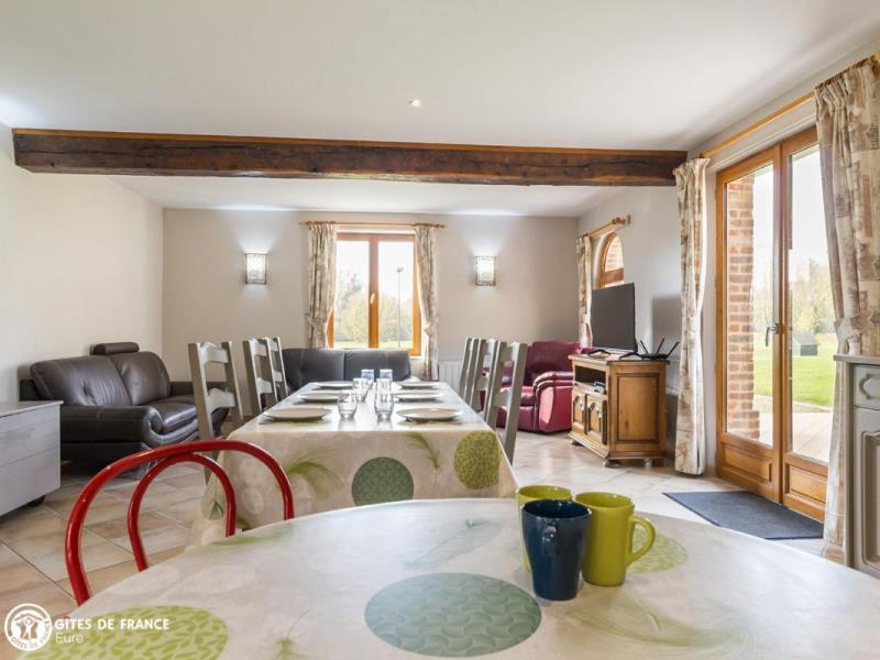 Dans un environnement remarquable, posée sur un méandre de la Seine entre les falaises calcaires et le chemin de halage, la ferme de Canteloup est une très belle propriété de 3,5 hectares. Jean-Pierre vous y accueille et vous propose ce joli gîte agréable, confortable et lumineux, installé dans une grande dépendance superbement rénovée. Sa terrasse et petit jardin ouvrent sur le grand herbage avec vue sur la Seine et les bateaux qui passent : insolite ! Au fond de la propriété, le chemin de halage vous mène vers de jolies balades au bord de l'eau. Vous profiterez également des nombreux jeux situés dans l'annexe et du terrain de pétanque. Aux alentours les découvertes ne manquent pas dans cette belle région de la Vallée de la Seine: balade le long du GR2, détente au lac de Léry-Poses et sa base de loisirs ou bien montée jusqu'au panorama des Deux Amants ou du Plessis pour y observer des paysages enchanteurs.