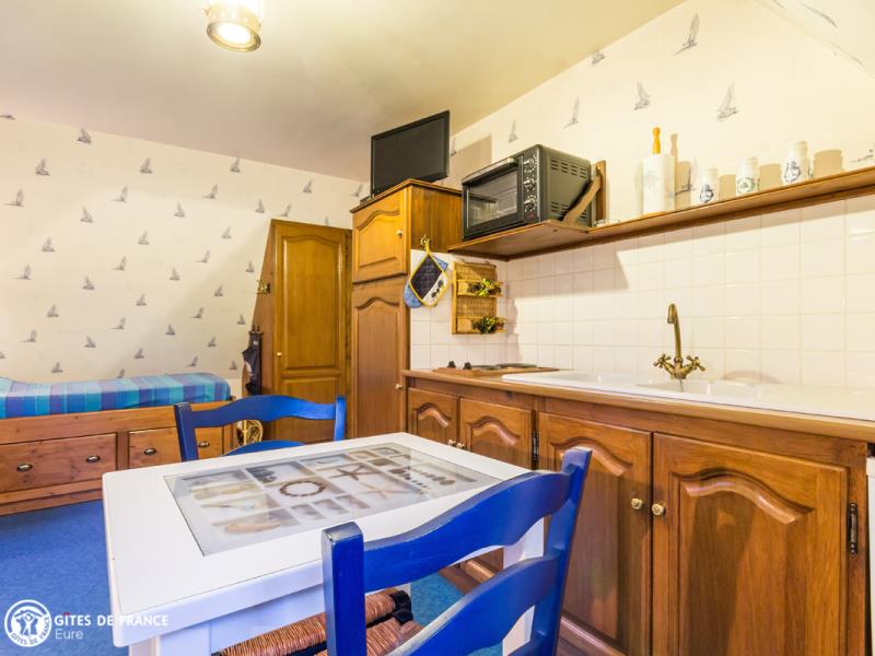 Situé à l'étage de la maison des propriétaires, ce petit gîte dispose d'un aménagement confortable et d'une décoration soignée. Du village, suivez la petite rivière, le Bec, et vous arrivez sur cette très jolie propriété au joli jardin si fleuri aux beaux jours. Vous profiterez du jardin de 4500 m² sur lequel coule l'adorable petite rivière. Le village du Bec Hellouin est une vraie pépite et fait partie des plus beaux villages de France : vous serez forcément sous le charme ! Les promenades sont nombreuses aux alentours, dans la forêt comme au fil de l'eau.