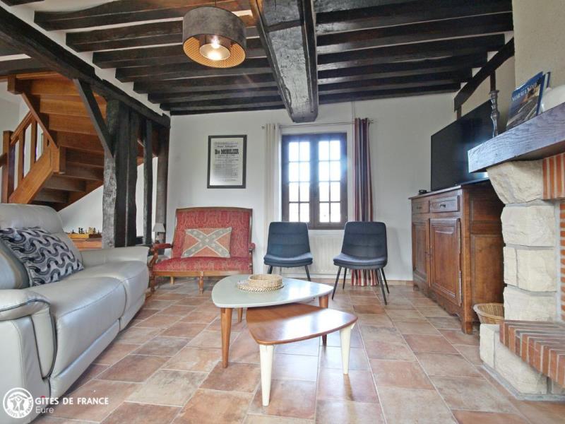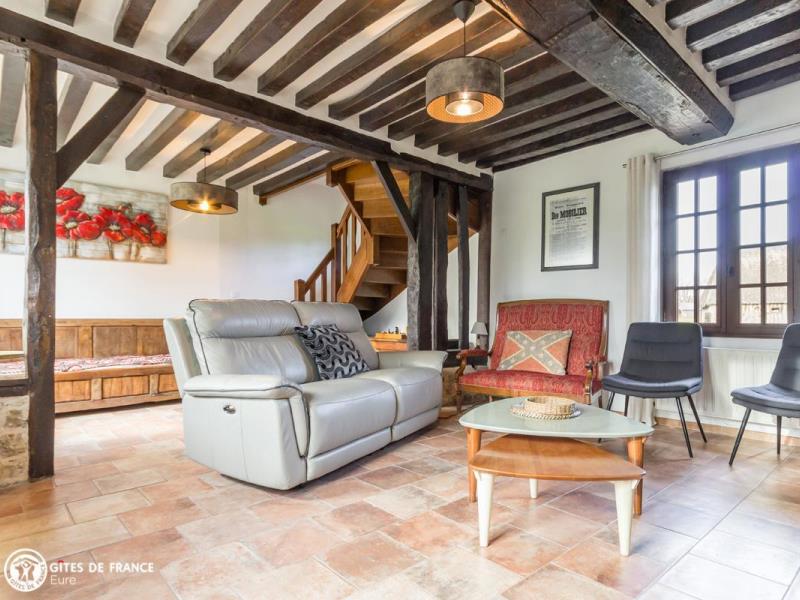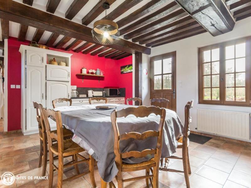 A l'entrée d'un village qui mène sur la Côte Fleurie, ce gîte très sympa, traditionnelle maison normande à pans de bois, a tous les atouts pour vous offrir une escapade dépaysement, active ou détente. Dès l'arrivée sur la propriété vous serez sous le charme de ce paysage "carte postale normande" : longère entourée de champs avec d'un côté l'âne Simone et les moutons qui vous accueillent et de l'autre un verger. Le gîte est confortable et vous offre de belles pièces de vie lumineuses et spacieuses. L'ambiance est chaleureuse grâce à la mise en valeur des atouts typiques de ces maisons anciennes comme les poutres et colombages apparents, dans une déco actuelle. Fabienne a pensé à vos loisirs avec jeux de société et jeux pour l'extérieur : ping-pong, badminton, portique, et le prêt de vélos de toutes tailles. Vous êtes à 500 mètres du village avec commerces et un restaurant. Honfleur et la mer ne sont qu'à 15 km, Pont-Audemer et ses canaux à 8 km, entre autres perles à découvrir.