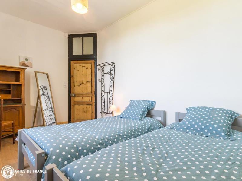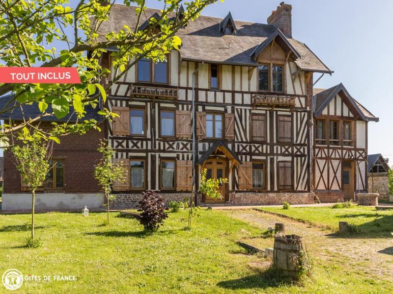 Cet ancien presbytère de la fin du XVIIIè est une élégante demeure familiale aux typiques pans de bois qu'Hervé a à coeur de remettre au goût du jour. Le second étage est aujourd'hui un gîte très agréable et lumineux aux belles pièces toutes en hauteur. L'ambiance est sympa : le mobilier de famille ou chiné vient habiller les pièces caractéristiques de ces belles maisons anciennes aux poutres apparentes, grandes fenêtres, cheminée déco et placards anciens. Vous êtes ici au coeur d'un adorable village du Roumois, en lisière de forêt de Brotonne qui recouvre tout un méandre de la Seine. Les paysages sont superbes entre panoramas incroyables sur le fleuve, balades à travers champs de lin ou de blé, dans les bois ou au fil de pittoresques petits villages. Côté loisirs, votre programme peut commencer par la visite des écomusées, sur place : Maison du Sabotier, Four à pain, Jardin des herbes sauvages, étonnants ifs millénaires convertis en chapelles et à 3 km la Maison du lin.