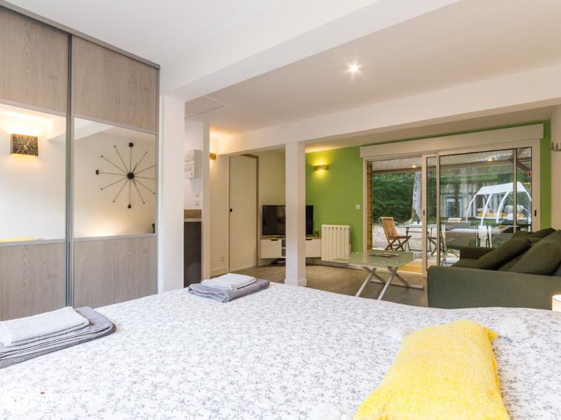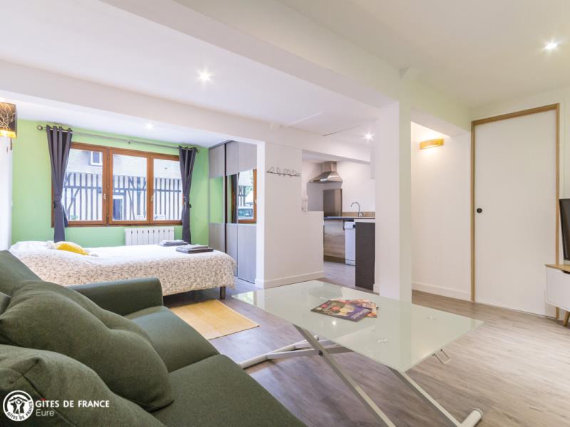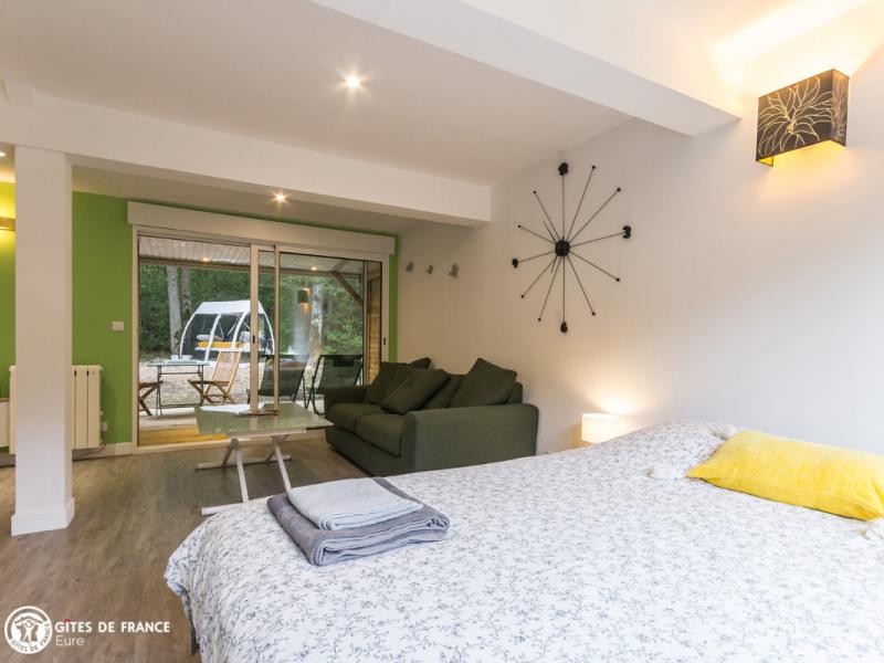 Envie d'une pause nature apaisante ? c'est ici ! La clairière est un joli petit cocon niché au coeur de la forêt ; entrez, le dépaysement est garanti. Agnès et Raphaël ont conçu ce lieu de vacances vraiment sympa dans un esprit loft moderne et chaleureux, cocooning et très confortable, dans des tons "nature" ; attentifs à votre bien être, ils sont pleins de belles idées : que diriez-vous d'une sieste au grand air dans ce lit suspendu (accessible l'été), bercés par le chant des oiseaux ? ou bien, un peu plus loin, d'un moment de convivialité dans l'espace forêt partagé ? Vous aimerez le côté "dedans-dehors" de ce studio tout ouvert sur une jolie terrasse bois et la forêt par une grande baie vitrée. Vous êtes ici entre Evreux, la jolie cité et ses bords de l'Iton, et la pittoresque vallée d'Eure à découvrir à pied, à vélo ou en canoë. En somme, plein de loisirs, de belles adresses de produits fermiers ou de bons restaurants, de quoi se faire plaisir ! Vos hôtes seront de bon conseil.