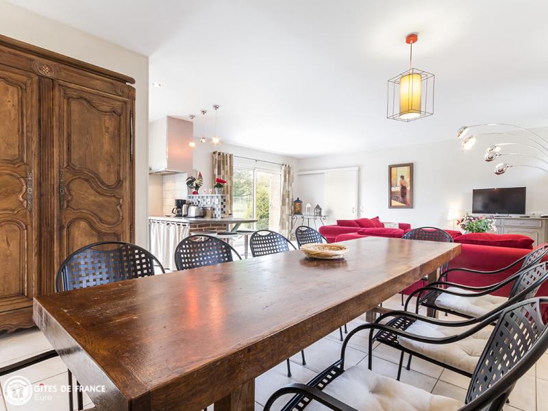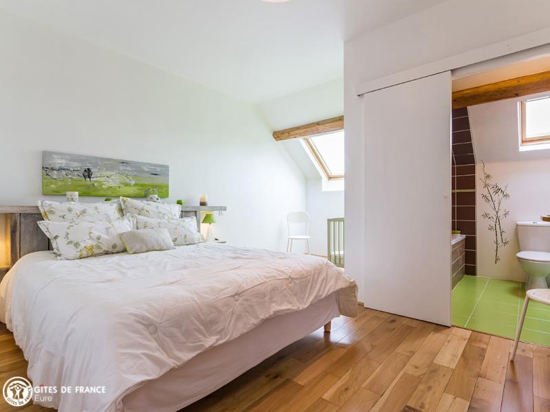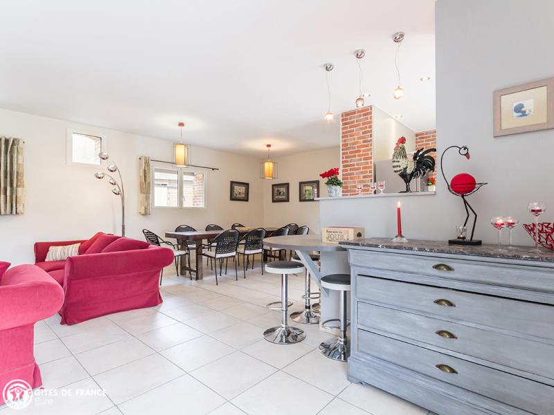 Laissez-vous séduire par l'appel de la plaine ! Loin du stress, retrouvez la poésie des choses simples. Dès l'entrée, l'escalier en vieux bois et fer forgé donne le ton. Dominique a su tirer parti des trésors cachés du grenier (meubles pâtinés, objets désuets) et créer une ambiance élégante, Alexandre a utilisé les plus beaux matériaux dans cette restauration qu'ils ont voulue respectueuse de l'environnement. Le résultat : cette belle et spacieuse maison de vacances prête à accueillir votre tribu ! Ici tout est fait pour votre confort et astucieusement aménagé pour que chacun trouve son petit coin préféré : belle pièce de vie lumineuse et conviviale qui ouvre sur la terrasse, coin détente et de jeux que les plus jeunes adoreront à l'étage, jolies chambres à la déco soignée, chacune avec sa salle d'eau ou de bain et un très joli jardin paysager parfait pour vos repas au grand air, jeux pour petits et grands ou un petit moment de détente à l'écart. Tout près, la vallée d'Eure.