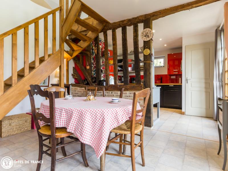 Au coeur d'un bourg vivant aux accents du Pays d'Auge, dynamique et sympa avec ses maisons maisons typiques, vous serez sous le charme de cette jolie et authentique chaumière. Elle a presque 200 ans et a conservé tout de son caractère avec ses pans de bois, torchis, et ses iris en faîtage, mais est aussi très actuelle et vraiment confortable. Michèle et Jean-Loup en ont fait un petit cocon adorable et douillet et ne sont pas avares de petites attentions pour que vous y soyez bien ; ils seront également plein de bons conseils pour orienter vos balades dans cette si jolie région, entre la Côte Fleurie et Honfleur, à 13 km, Pont-Audemer et le Marais Vernier. Vous profitez d'une large terrasse avec son mobilier pour un repas en plein air ou faire la sieste et d'un coin jardin privatif sur le grand jardin clos et arboré des propriétaires. Les restaurants et commerces sont à deux pas, au bout de la rue.
