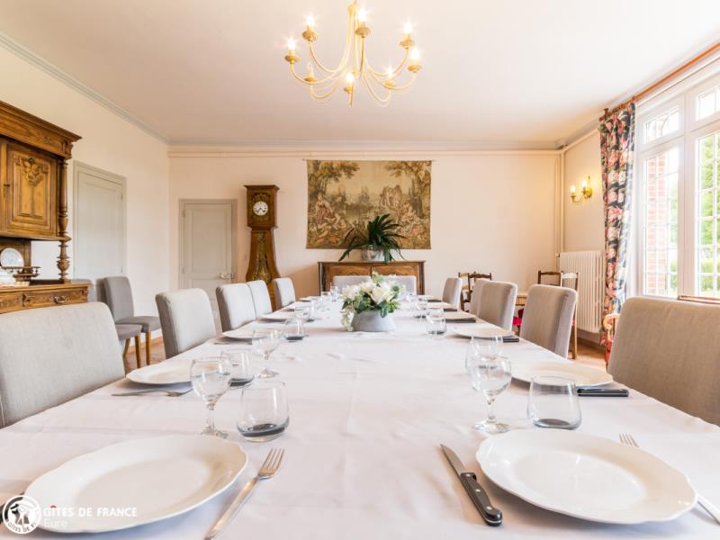 Dans un joli petit coin de campagne tout près de Bernay, petite cité pleine de charme aux typiques maisons à pans de bois, cette élégante demeure du début XXè siècle vous accueille. Ancienne maison du corps de ferme, elle est depuis toujours adaptée à l'accueil de grandes familles et vous offrira tout l'espace voulu pour un séjour avec votre tribu : de belles pièces de vie où chacun trouvera sa place et 6 chambres spacieuses, lumineuses, et toutes donnant sur le jardin. Parlons de ce jardin : très grand et dégagé, ouvert sur les champs tout autour et un paysage très bucolique, il permettra à tous de courir, jouer, se reposer à l'ombre des grands arbres ou prendre un repas dès les beaux jours. Des jeux sont à disposition sous la grange : badminton, ping-pong, ou pétanque sur les allées. Marie-Rose et Paul vous accueillent chaleureusement et seront de bon conseil sur la découverte de cette région attachante. Commerces et restaus sympas à Bernay, mais aussi piscine et un golf pastoral.