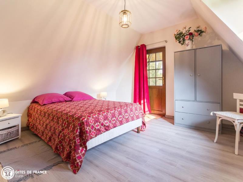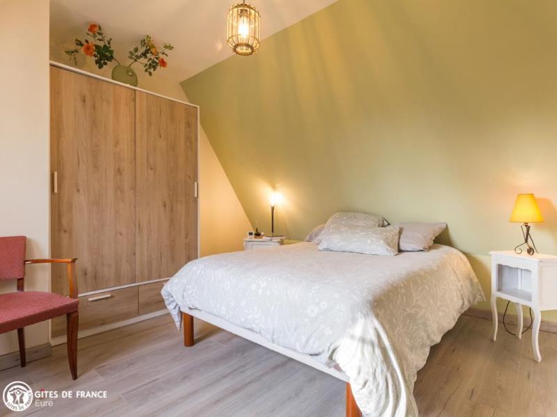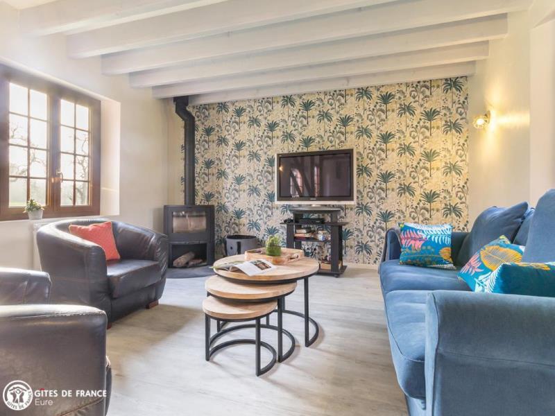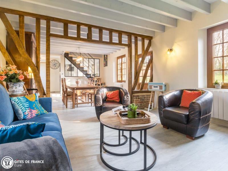 Une jolie carte postale de Normandie, tel est le cadre de la Maison de Lorette. Traditionnelle avec ses colombages et sa queue de geai, cette véritable maison de famille de Michèle a conservé son caractère tout en entrant dans un nouveau siècle : poutres blanchies, pans de bois apparents, belle armoire normande côtoient une déco actuelle aux tons clairs réhaussée de couleurs du moment, dans une ambiance douce et gaie. Le confort est là, entre un salon douillet à souhait près du poêle à bois et une cuisine au top, et le gîte spacieux avec des pièces généreuses et lumineuses, toutes ouvertes sur le jardin et la campagne environnante. Au milieu de ce grand jardin, la maison est aussi en pleine campagne, entourée d'herbages où se promènent les vaches entre les pommiers. Tout autour, plein de superbes balades dans ces petites routes du bocage ou dans la vallée. Vous pouvez aussi rejoindre Cormeilles à pied, typique et charmante avec ses maisons colorées, ses bons commerces et restaus.