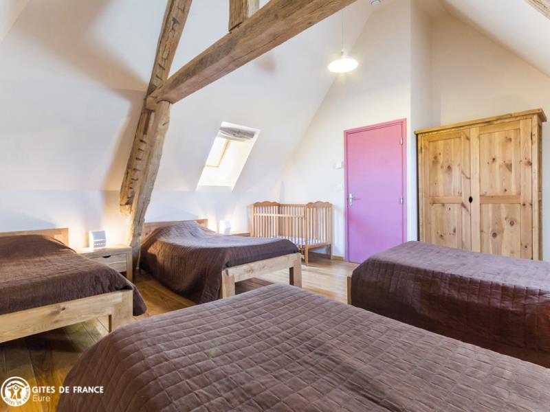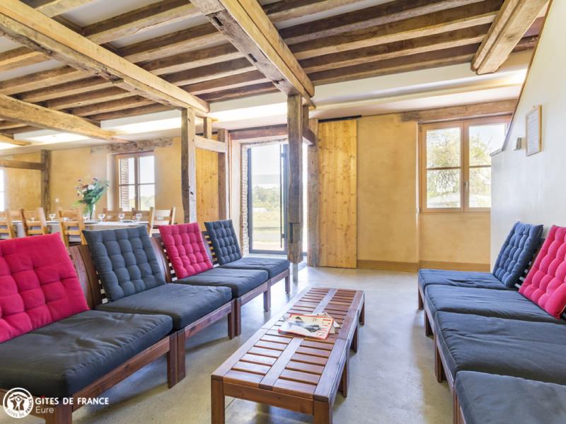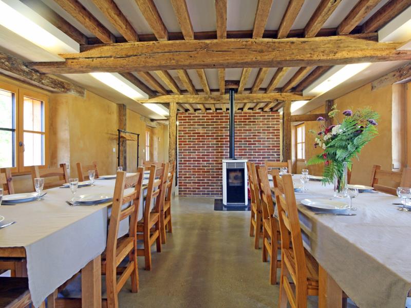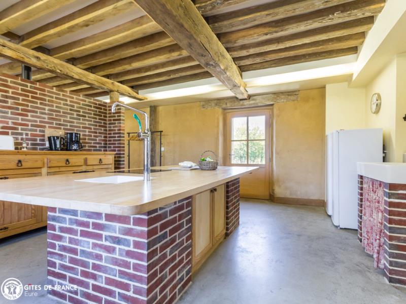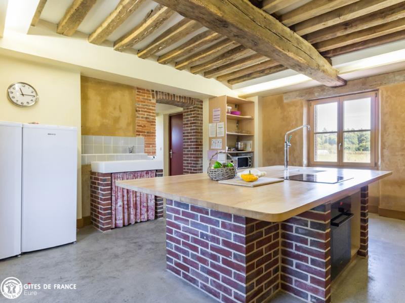 Fruit d'une belle aventure associative, cette ancienne maison de briques et de terre est devenue un superbe écogîte, confortable, lumineux et avant-gardiste. Sous des aménagements contemporains et une décoration chaleureuse, se cache un hébergement écologique pilote : vous serez surpris par son étonnante enveloppe de verre ! Outre cette particularité, vous séjournerez ici dans un gîte spacieux et très fonctionnel avec de belles pièces de vie et des espaces vraiment adaptés à votre tribu. Côté jardin : une grande terrasse, un vaste espace où jouer et se défouler, à moins que vous ne soyez adeptes d'une sieste sous les pommiers ; vue sur le remarquable château de Beaumesnil, XVIIe (à visiter absolument, au milieu de ses douves et jardins à la Française). Juste à côté, après les vergers, le potager conservatoire et sa boutique de légumes de saison et produits transformés bio, du printemps à l'automne.