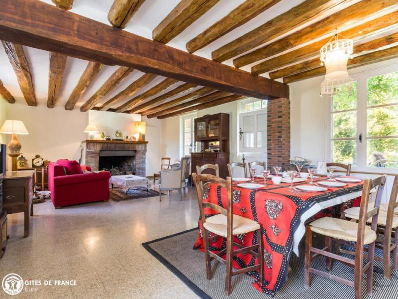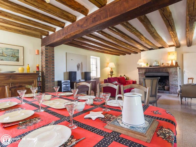 La maison Nicourt est une vraie maison de campagne comme on les aime ! Dès l'arrivée sous l'allée de tilleuls vous serez dans l'ambiance en découvrant cette longère traditionnelle pleine de charme avec sa glycine qui rampe le long de la façade, au milieu d'un vaste jardin arboré très agréable avec vue sur les champs environnants. Vous y retrouvez l'atmosphère chaleureuse et conviviale d'un véritable cocon où il fait bon vivre et se retrouver en famille : mobilier patiné, objets de déco chinés, jolie vaisselle rétro, poutres apparentes, sol façon terrazzo, pour un intérieur qui raconte une histoire. Le vaste jardin est tout aussi charmant avec tous ses petits coins où se reposer, lire, jouer et se dégourdir les jambes ou prendre ses repas. Odile et Antoine ont pensé à vos loisirs avec un portique, badminton, croquet, ballon, jeux de société, jouets et bibliothèque. Et pourquoi pas rendre visite aux vaches et moutons voisins ?