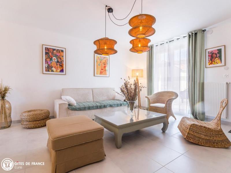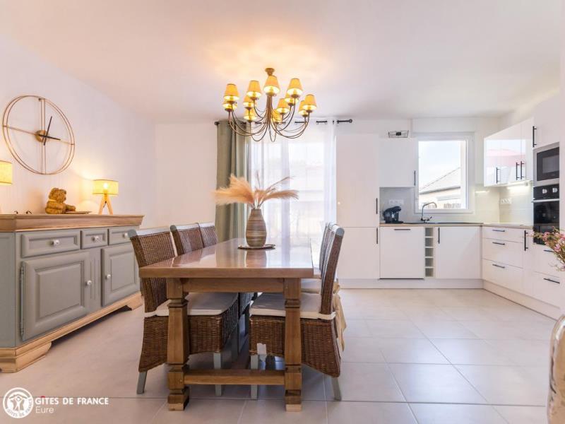 Dans un joli bourg typiquement normand avec commerces sympas et restaurants, la Maison Romy sera le lieu parfait pour un petit week-end ressourçant ou pour rayonner dans cette incroyable région le temps d'un séjour. Vous êtes ici dans une région aux multiples paysages, entre la Côte Fleurie et Honfleur, le Pays d'Auge avec à sa porte le superbe village de Cormeilles, l'estuaire de la Seine que l'on longe à pied ou à vélo, et le superbe Marais Vernier, vaste zone naturelle ; tout cela dans les 15 km. Cette maison toute neuve a été aménagée pour vos vacances, dans une ambiance chic et vraiment chaleureuse . Dès l'entrée, vous serez sous le charme de cette déco réussie qui fait la part belle aux matières naturelles et aux tons clairs : bois, jonc et matières végétales, meubles chinés et revisités, avec des touches parfois facétieuses. L'ensemble est reposant et confortable, très bien équipé. La terrasse ensoleillée sera très appréciée aux beaux jours.