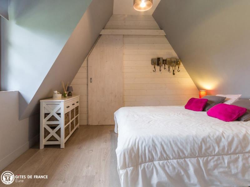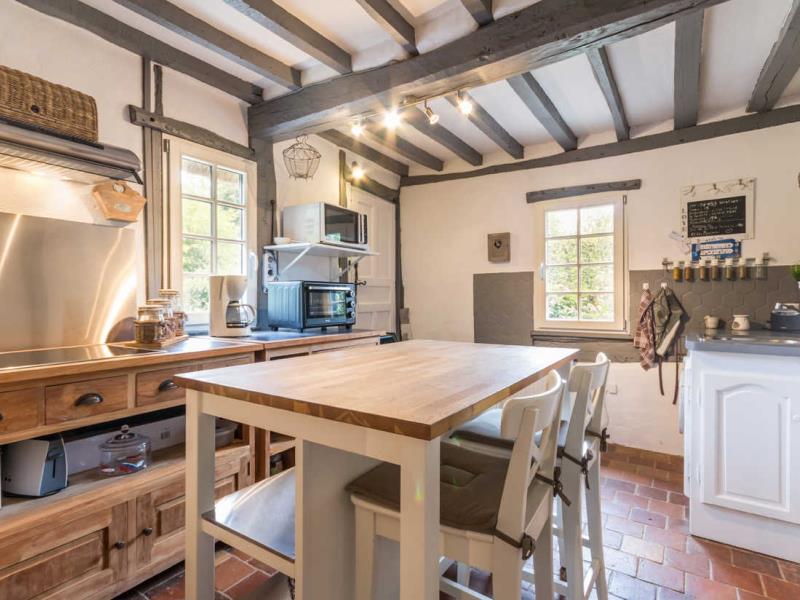 Offrez-vous un séjour dans une authentique chaumière normande à pans de bois, pleine de charme. Les propriétaires en ont fait un petit bijou, un lieu vraiment paisible et chaleureux ; ils lui ont conservé ses tomettes, éclairci ses poutres, apporté de la lumière et l'ont décorée avec beaucoup de goût dans des tons clairs pour créer ce joli petit cocon. Dehors, rien que pour vous, un grand jardin dessiné par les propriétaire avec ses recoins (chacun trouvera son préféré !) et son sous-bois très sympa ; plusieurs salons de jardin et des chaises longues pour en profiter. Tout près, de très belles découvertes à faire, comme Cormeilles et ses maisons aux colombages colorés ou Pont-Audemer, charmante avec ses canaux, et les beaux paysages de cette campagne vallonnée, découpée de cours d'eau, entre Risle et pays d'Auge, jusqu'à la côte Fleurie.