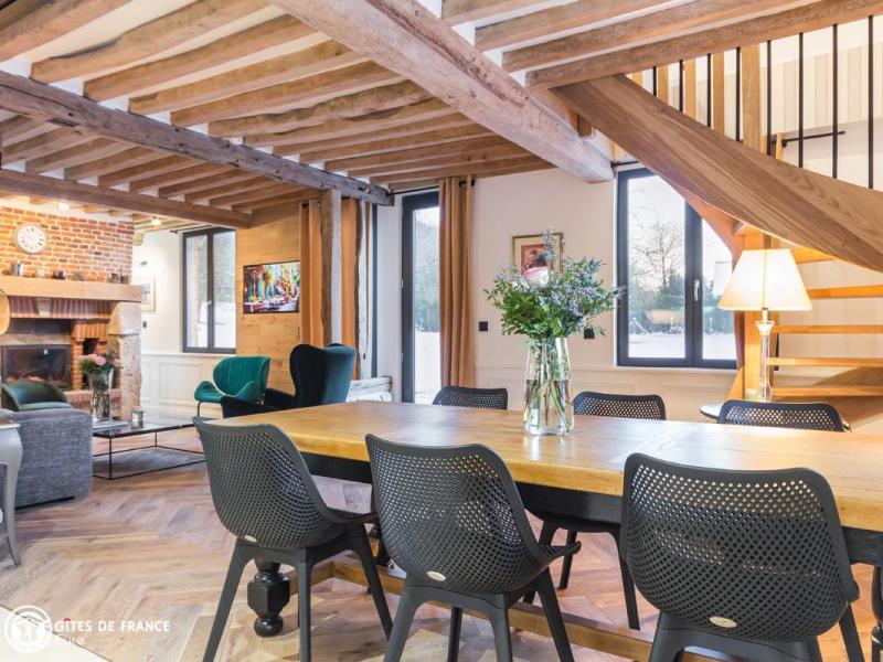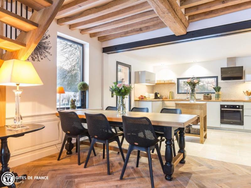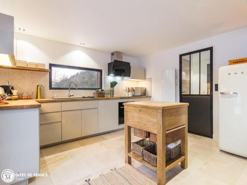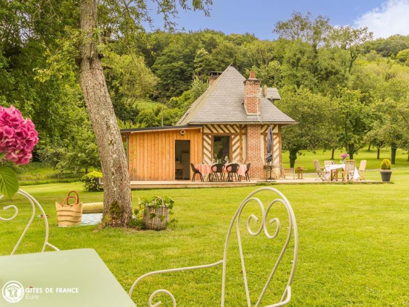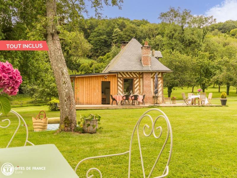 La Rivière Apaisante est tout simplement un petit coin de paradis ! Observer le réveil de la nature en prenant son café, se reposer dans un hamac sous les pommiers, papoter confortablement installés dans un transat au son des clapotis, prendre un verre convivial dans le salon chaleureux près d'une bonne flambée ... vous composerez vous-même le programme de votre séjour dans ce lieu superbe, magique et rien que pour vous. Entrez dans cette jolie maison aux pans de bois traditionnels et découvrez l'ambiance élégante et chaleureuse de ce véritable cocon créé avec beaucoup de goût et le sens du détail par Justine et Antoine : beaux matériaux nobles, jolies lumières, tons doux inspirés par la nature dont on profite depuis chaque pièce, objets choisis, meubles de famille revisités, avec toujours le souci de votre confort. Vous êtes ici sur presque un hectare privatisé, au coeur d'une petite vallée pleine de charme, dans de beaux paysages bien normands à 10 km d'Honfleur et la Côte de Grâce.